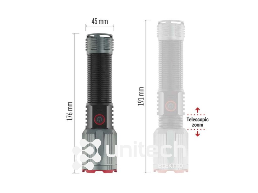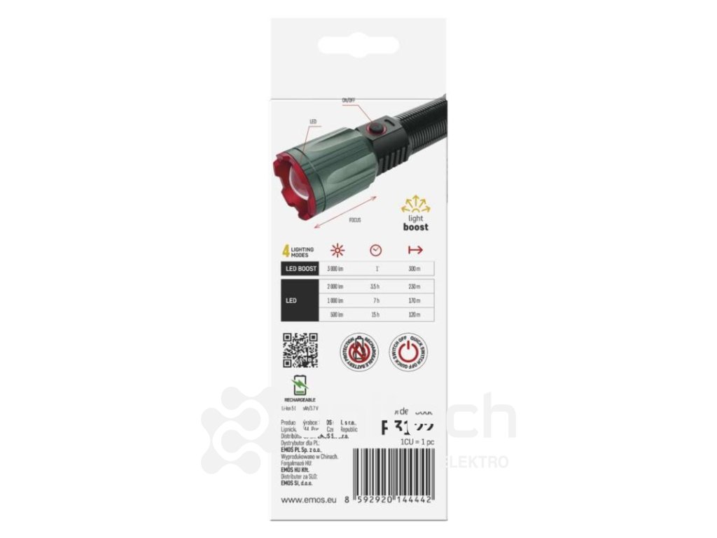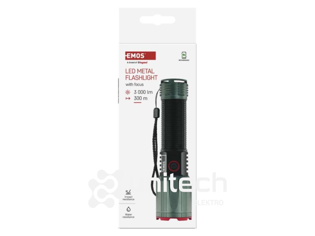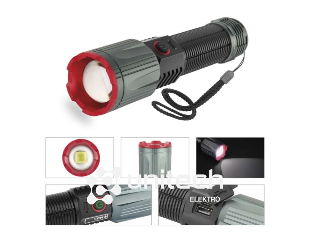 batérie súčasťou balenia: áno|doba nabíjania: 6 h|doba svietenia: 3,5–15 h|doba svietenia detail: LED BOOST – 1 min, LED 100 % – 3,5 h, LED 50 % – 7 h, LED 20 % – 15 h|dosvit: LED BOOST – 300 m, LED 100 % – 230 m, LED 50 % – 170 m, LED 20 % – 120 m|farba: čierna, metalická sivá|fokus: áno|hmotnosť: 360 g|LED indikácia nabíjania: áno|LED indikácia stavu akumulátora: áno|materiál: hliník|maximálny dosvit: 300 m|maximálny svetelný tok: 3 000 lm|nabíjací: áno|napájanie: Li-Ion 26650|nárazuvzdornosť: áno|počet režimov svietenia: 4|predajný obal: 1 ks, krabica|príslušenstvo: neuvádza sa|režimy: LED BOOST, LED 100 %, LED 50 %, LED 20 %|rozmer: 175 × 45 × 45 mm|špeciálna funkcia: funkcia rýchleho vypnutia, funkcia ochrany batérie, funkcia powerbanky|svetelný tok: LED BOOST – 3 000 lm, LED 100 % – 2 000 lm, LED 50 % – 1 000 lm, LED 20 % – 500 lm|typ batérie: 5 000 mAh/3,7 V|typ napájacieho konektoru: USB-C|vodeodolná: áno (IP43)|vybavenie: pútko|záručná doba: 2 roky|zdroj svetla: LED|značka: EMOSDodatočné parametre