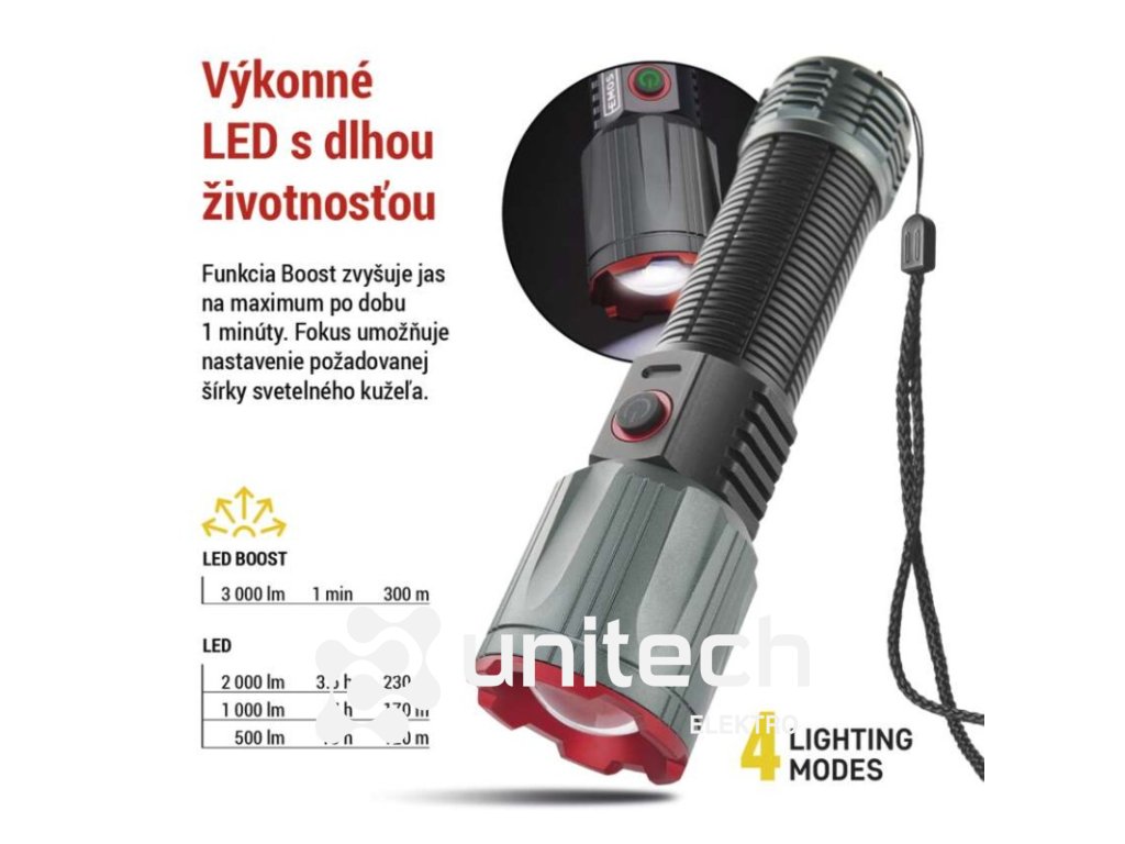 | doba svietenia detail: | LED BOOST – 1 min, LED 100 % – 3,5 h, LED 50 % – 7 h, LED 20 % – 15 h |