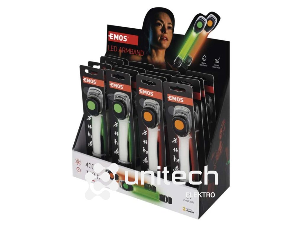 batérie súčasťou balenia: áno|doba nabíjania: neuvádza sa|doba svietenia: 160 h|doba svietenia detail: LED 100 % – 160 h|dosvit: neuvádza sa|farba: #|fokus: nie|hmotnosť: 44 g|LED indikácia nabíjania: neuvádza sa|LED indikácia stavu akumulátora: neuvádza sa|materiál: plast + guma|maximálny dosvit: neuvádza sa|maximálny svetelný tok: 10 lm|nabíjací: nie|napájanie: 2× CR2032|nárazuvzdornosť: áno|počet režimov svietenia: 2|predajný obal: 16 ks, display box|príslušenstvo: neuvádza sa|režimy: #|rozmer: 190 × 35 × 17 mm|špeciálna funkcia: neuvádza sa|svetelný tok: LED 100 % – 10 lm|typ batérie: CR2032 (3 V)|typ napájacieho konektoru: neuvádza sa|vodeodolná: áno (IP43)|vybavenie: náramok na ruku|záručná doba: 2 roky|zdroj svetla: LED|značka: EMOSDodatočné parametre