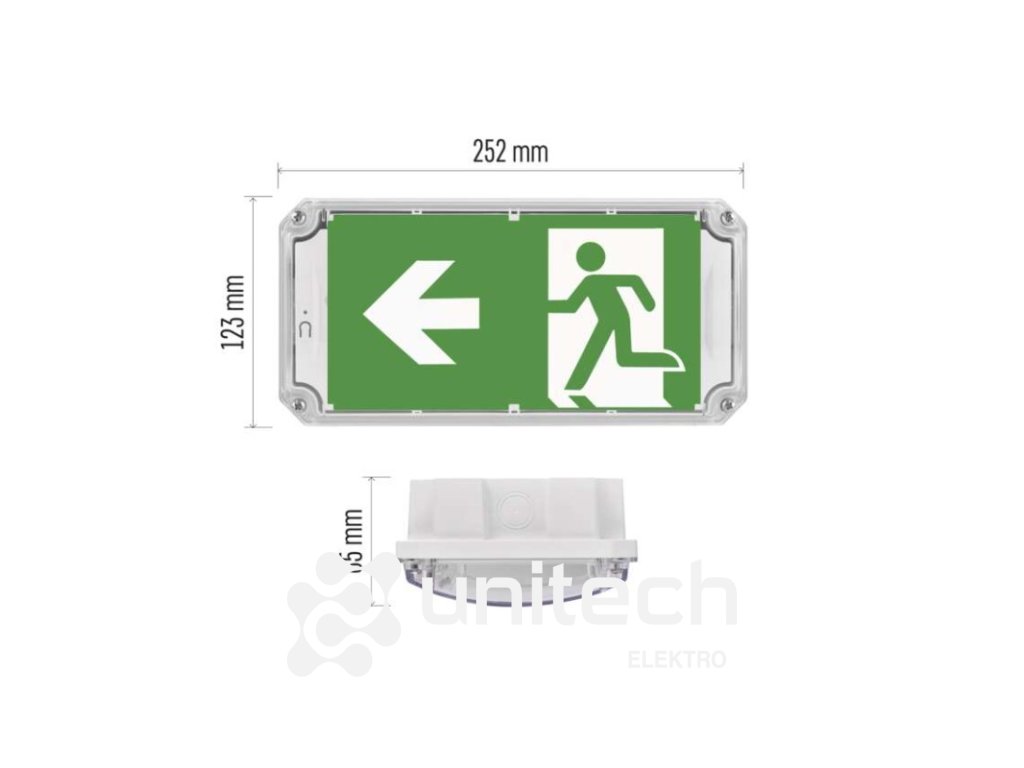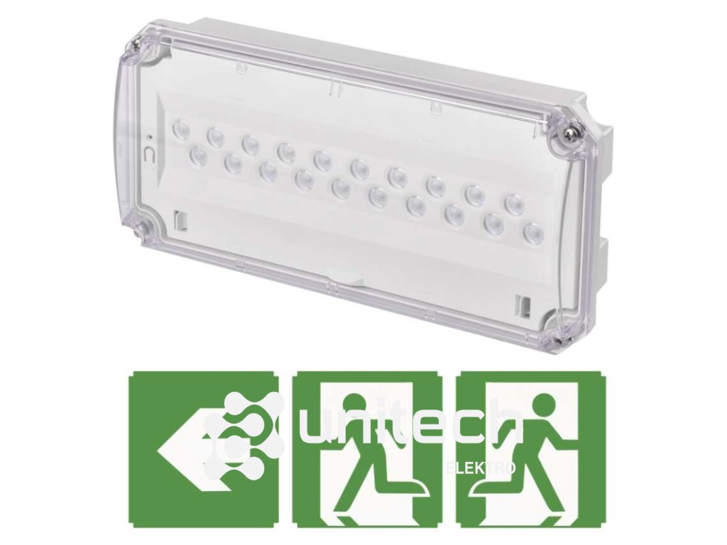 dĺžka zálohy: 3 h|doba nabíjania batérie: ≥ 24 hodín|farba svetla: studená biela|farba tela: biela|frekvencia napájacieho napätia: 50/60 Hz|kapacita batérie: 1 500 mAh|kontrolné vybavenie: autotest|krytie: IP66|materiál difúzora: plast (PC)|materiál tela: plast (PC)|napájacie napätie: 220–240 V AC|predajný obal: 1 ks, krabica|prevádzkový režim: trvalý/pohotovostny|príkon na vstupe: 3 W max.|rozmer: 252 × 123 × 65 mm|rozsah pracovných teplôt: 0 °C až +45 °C|stupeň ochrany proti mechanickým nárazom: IK10|svetelný tok: 150 lm|teplota chromatičnosti: 6 500 K|trieda ochrany: II|typ batérie: LiFePo4|typ montáže: prisadená|účinník: >0,5|vstupný prúd: 75 mA|výstupné napätie: neuvádza sa|výstupné napätie v núdzovom režime: neuvádza sa|výstupný výkon v núdzovom stave: 1 W|záručná doba: 4 roky|záruka na batériu: 2 roky|zdroj svetla: LEDDodatočné parametre