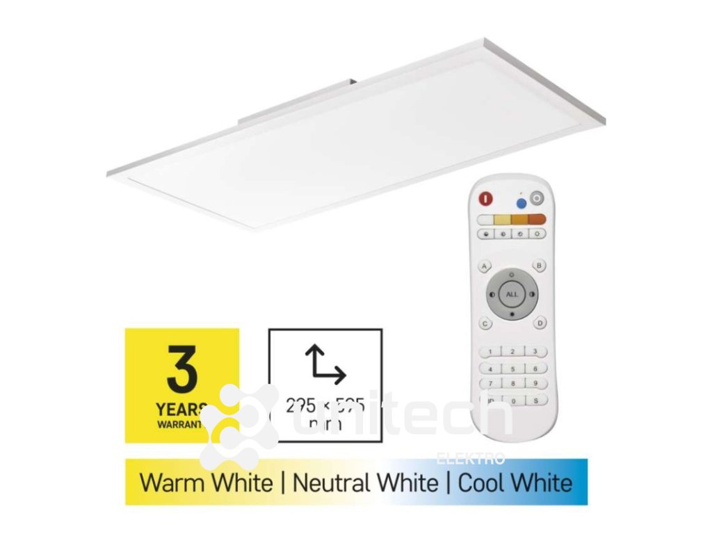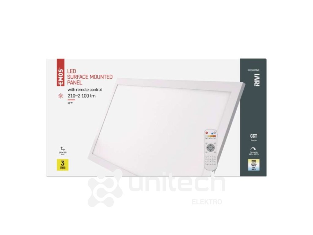 ďalšie funkcie: –|diaľkový ovládač: áno|do chodby a na schodisko: nie|do dielne a garáže: nie|do kancelárie: áno|do kuchyne: áno|do kúpeľne: nie|do obývačky, spálne a detskej izby: áno|dosah senzora: nemá senzor|do záhrady a na balkón: nie|farba svetla: teplá biela–studená biela|farba tela: biela|flicker-free: áno|frekvencia: 50/60 Hz|index podania farieb (CRI): Ra > 80|jazyky aplikácie: –|kategória: EXCLUSIVE|kompatibilita: –|krytie: IP20|materiál difúzora: plast (PC)|materiál LGP: PS|materiál tela: hliník|montážny otvor: –|možnosť stmievania: áno|náhrada za žiarovku: –|napätie: 220–240 V|notifikácie do mobilnej aplikácie: #|obsah balenia: –|ovládanie hlasovými asistentmi: #|podporované OS: –|pohybový senzor: nie|predajný obal: 1 ks, krabica|prenosová frekvencia: –|príkon: 25 W|protokol: –|prúd: 110 mA|rada: RIVI|rozmer: 295 × 595 × 52 mm|spôsob montáže: prisadené|svetelná účinnosť: 85 lm/W|svetelný tok: 210–2 100 lm|teplota chromatičnosti: 2 700–6 000 K|tvar: obdĺžnik|typ difúzora: mliečny|typ svietidla: klasické svietidlo|účinník: > 0,9|UGR<: 22|uhol vyžarovania: 115°|umiestnenie: stropné|výstupný prúd zo zdroja: –|záručná doba: 3 roky|zdroj svetla: LED|životnosť: 30 000 hodínDodatočné parametre
