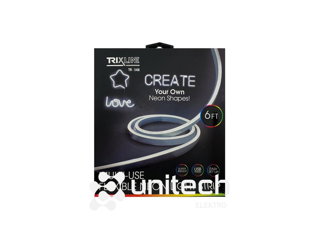 Neónový biely LED pásik TR-34N Trixline napájaný cez integrované USB. Dizajnový prvok, ktorý vnesie do priestoru modernú atmosféru. Ideálne pre vytváranie dekorácií na slávnostné príležitosti ako sú večierky, narodeninové oslavy, plesy, Vianoce, svadby, Halloween, Silvester. Výzdoba interiéru detských izieb, obývačiek, reštaurácií, barov, krčiem, klubov, herní a pod. Opasok možno ľahko ohnúť do ľubovoľného tvaru, obrazca, nápisu či reklamného textu a zastrihnúť na požadovanú dĺžku každých 2,5 cm medzi čiernymi drôtikmi.