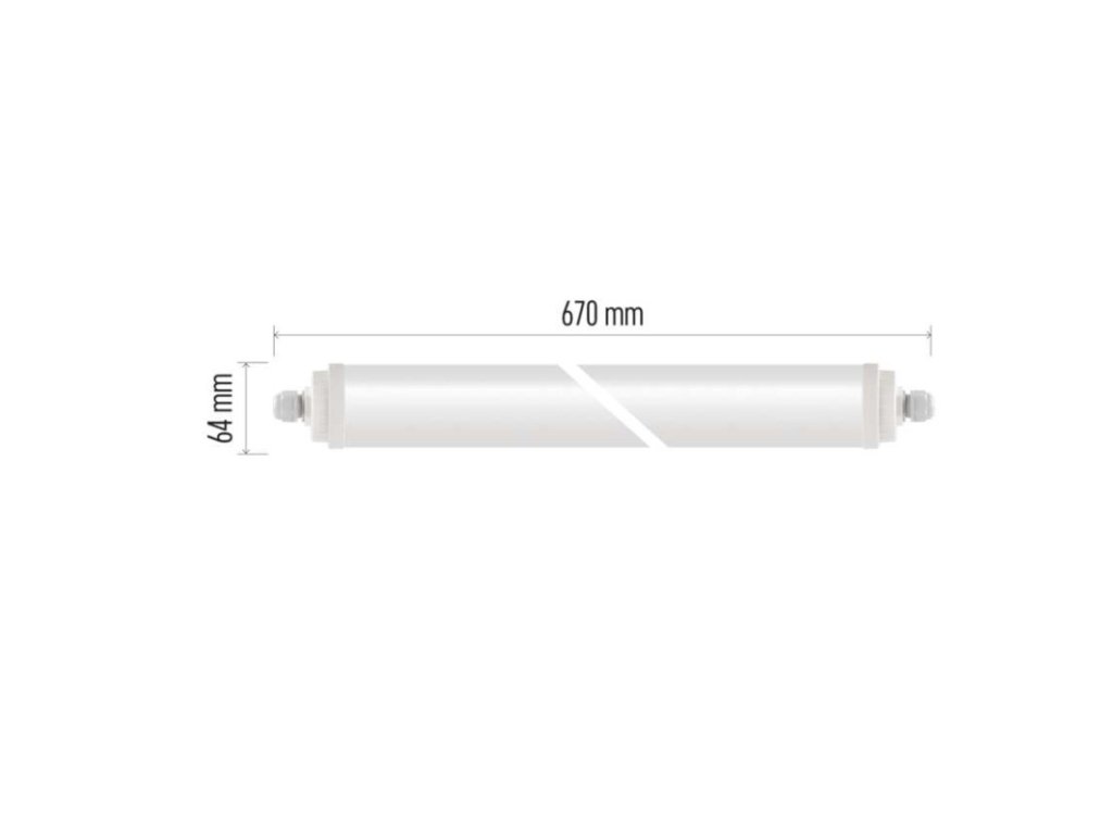 farba svetla: neutrálna biela|farba tela: biela|frekvencia: 50/60 Hz|index podania farieb (CRI): Ra >80|krytie: IP65|materiál: plast (PC)|materiál difúzora: plast (PC)|materiál spon: nemá spony|materiál tela: plast (PC)|možnosť stmievania: nie|náhrada za žiarovku: 2× 18 W CFL|napätie: 220–240 V|predajný obal: 1 ks, krabica|priebežná monáž: áno|príkon: 18 W|prúd: 85 mA|rozmer: 670 × 64 × 64 mm|rozsah pracovnej teploty: -20 °C až +40 °C|stupeň ochrany proti mechanickým nárazom: IK08|svetelný tok: 2 200 lm|svetelný tok v núdzovom režime: neuvádza sa|teplota chromatičnosti: 4 000 K|trieda ochrany: II|typ difúzora: mliečny|typ montáže: prisadená|typ riadenia: neuvádza sa|uhol vyžarovania: 120°|výdrž batérie: neuvádza sa|záručná doba: 5 rokov|záruka na batériu: neuvádza sa|zdroj svetla: LED|životnosť: 50 000 hodínDodatočné parametre