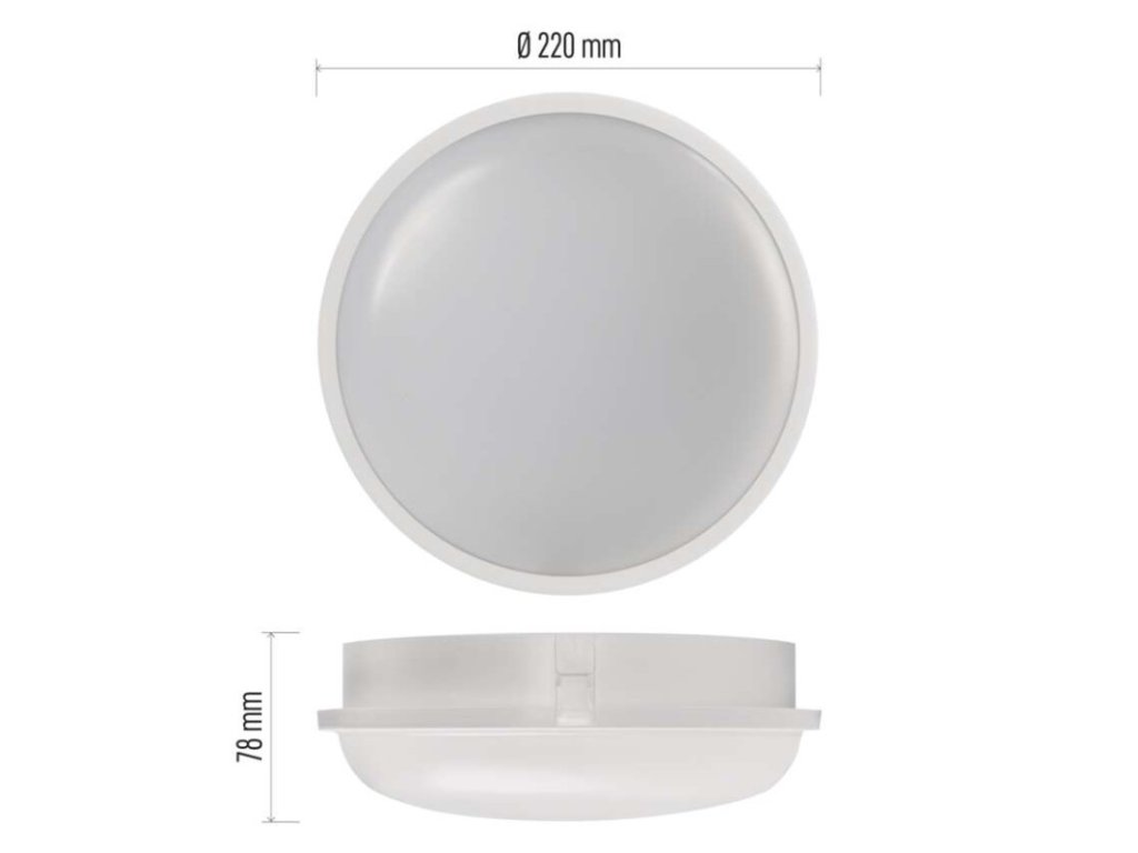 diaľkový ovládač: nie|do chodby a na schodisko: áno|do dielne a garáže: áno|do kancelárie: nie|do kuchyne: nie|do kúpeľne: áno|do obývačky, spálne a detskej izby: nie|dosah senzora: nemá senzor|do záhrady a na balkón: áno|farba svetla: neutrálna biela|farba tela: biela|flicker-free: áno|frekvencia: 50/60 Hz|index podania farieb (CRI): Ra > 80|kategória: CLASSIC|krytie: IP65|materiál difúzora: plast (PC)|materiál LGP: neuvádza sa|materiál tela: plast (PC)|montážny otvor: neuvádza sa|možnosť stmievania: nie|náhrada za žiarovku: 120 W|napätie: 220–240 V|pohybový senzor: nie|predajný obal: 1 ks, krabica|príkon: 20 W|prúd: 160 mA|rada: QARI|rozmer: priemer 220 × 78 mm|spôsob montáže: prisadené|svetelná účinnosť: 80 lm/W|svetelný tok: 1 900 lm|teplota chromatičnosti: 4 000 K|tvar: kruh|typ difúzora: mliečny|typ svietidla: klasické svietidlo|účinník: > 0,5|UGR<: neuvádza sa|uhol vyžarovania: 120°|umiestnenie: stropné/nástenné|výstupný prúd zo zdroja: neuvádza sa|záručná doba: 2 roky|zdroj svetla: LED|životnosť: 25 000 hodínDodatočné parametre