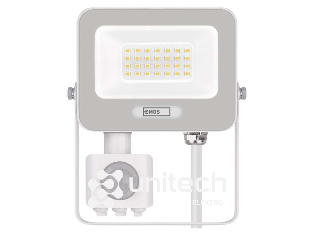LED reflektor GLARO s pohybovým čidlom, 20 W, biely, IP54, 2000 lm, neutrálna biela