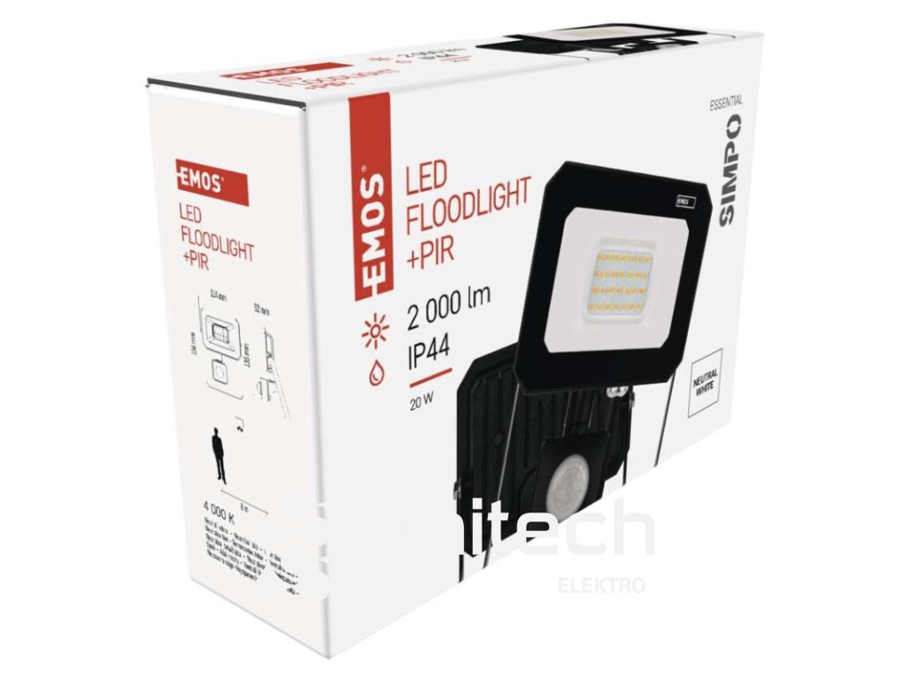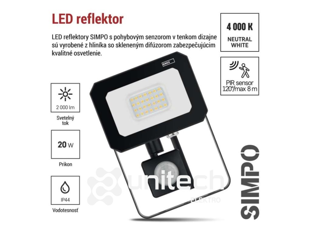 LED reflektor SIMPO s pohybovým čidlom 20 W neutrálna biela