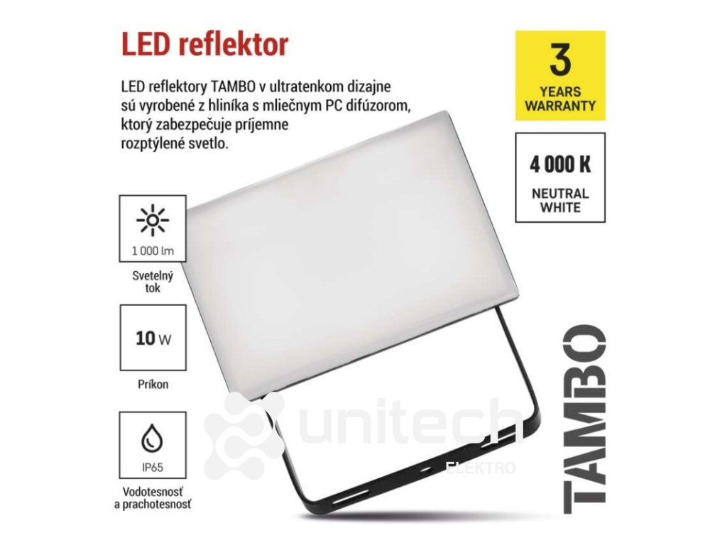 LED reflektor TAMBO, 10 W, 1000 lm, IP65, čierny