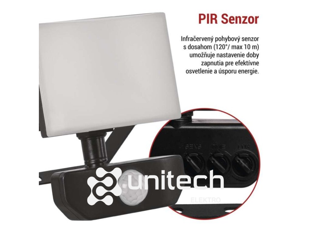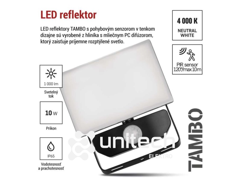 LED reflektor TAMBO so senzorom pohybu, 10 W, 1000 lm, čierny