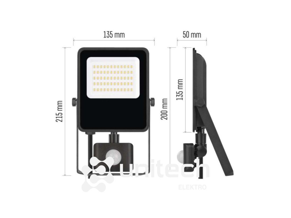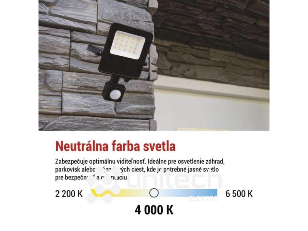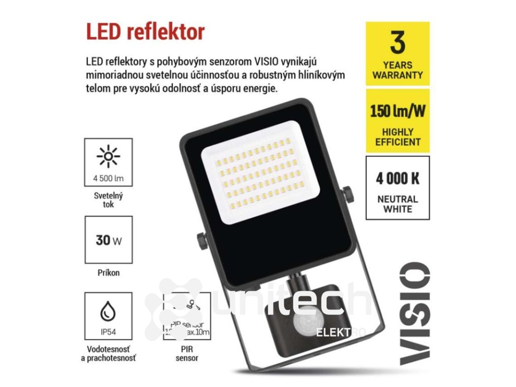 LED reflektor VISIO s pohybovým čidlom, 30 W, neutrálna biela, čierný