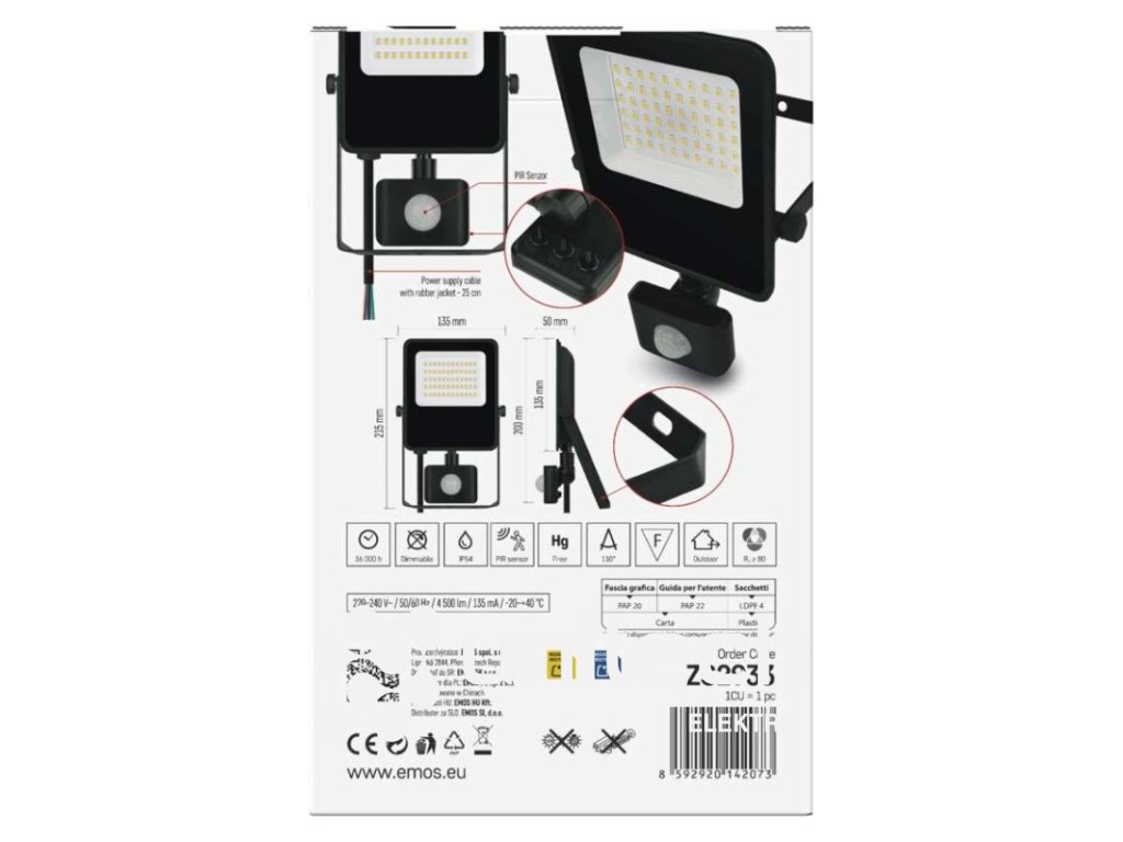 akumulátor: nie|dĺžka prívodného kábla: 25 cm|doba svietenia na AKU: #|dosah PIR senzora: 10 m|energetická trieda použitého zdroja svetla: –|farba: čierna|farba svetla: neutrálna biela|flicker-free: áno|frekvencia: 50/60 Hz|index podania farieb (CRI): Ra > 80|kategória: CLASSIC|krytie: IP54|materiál difúzora: sklo|materiál prívodného kábla: guma|materiál tela: hliník|napájanie: zo siete|napätie: 220–240 V~|PIR senzor: áno|počet priechodných zásuviek: #|použitie: povrchová montáž|predajný obal: 1 ks, krabica|príkon: 30 W|prúd: 135 mA|rada: VISIO|rozmer: 215 × 135 × 50 mm|rozsah pracovnej teploty: -20 °C až +40 °C|skúšobná žiarovka súčasťou balenia: nie|stmievanie: nie|stupeň ochrany proti mechanickým nárazom: IK06|svetelná účinnosť: #|svetelný tok: 4 500 lm|teplota chromatičnosti: 4 000 K|typ priechodných zásuviek: #|typ prívodného kábla: H05RN-F|typ stmievania: –|účinník: > 0,9|uhol vyžarovania: 110°|záručná doba: 3 roky|zdroj svetla: LED|životnosť: 36 000 hodinDodatočné parametre