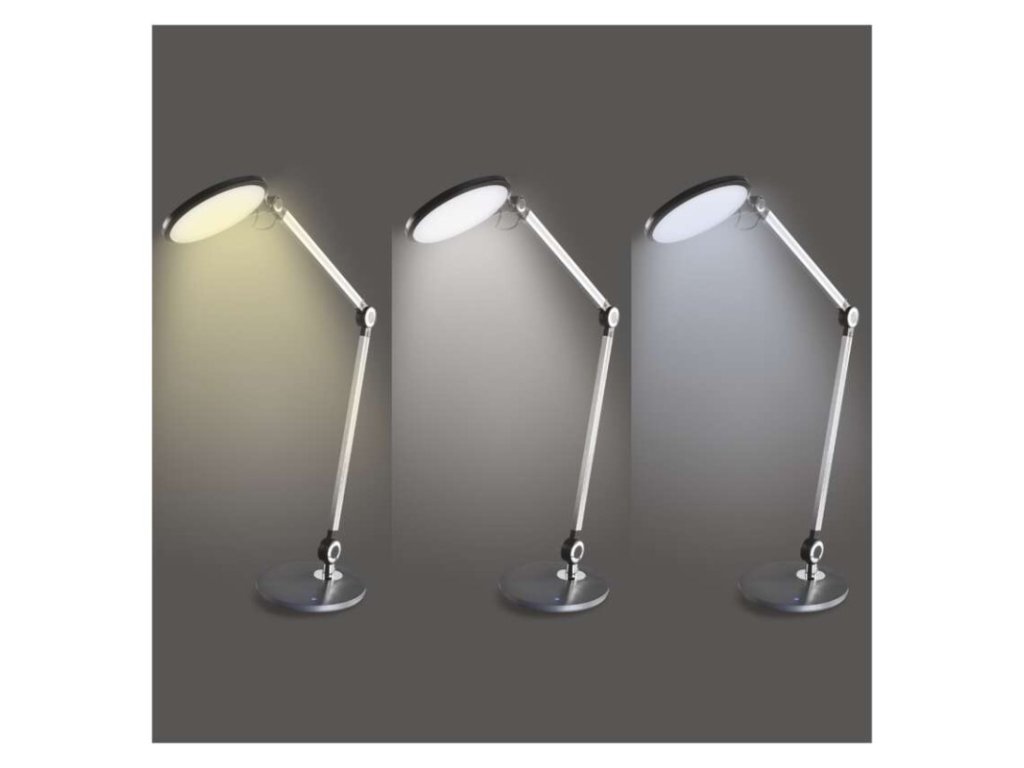 činiteľ starnutia: neuvádza sa|čip LED: neuvádza sa|dĺžka prívodného kábla: 1.3 m|energetická trieda: E|energetická trieda (od 1.9.2021): neuvádza sa|farba: tmavo šedá|farba svetla: teplá/neutrálna/studená biela|index podania farieb (CRI): Ra >80|integrovaná nabíjacia batéria: nie|krytie: IP20|materiál: hliník/plast|max. výkon: neuvádza sa|napájacie trafo: 13,5 V/1 500 mA|napájací zdroj súčasťou balenia: áno|napätie: 220–240 V|obsah ortuti: neuvádza sa|pätica (uchytenie žiarovky): neuvádza sa|počet LED: neuvádza sa|počet spínacích cyklov: neuvádza sa|predajný obal: 1 ks, krabica|príkon: 9,2 W|rozmer: 200 × 550 × 700 mm|rýchlosť nábehu na 100 %: neuvádza sa|stmievanie: áno|svetelný tok: 640 lm|teplota chromatičnosti: 3 000/4 000/6 500 K|typ napájania: sieť|účinník: neuvádza sa|USB port: nie + bezdrôtové nabíjanie|životnosť: neuvádza saDodatočné parametre