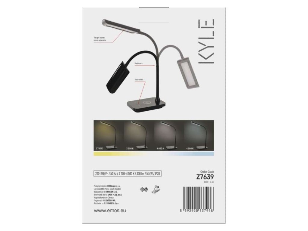 činiteľ starnutia: 0,96|čip LED: SMD|dĺžka prívodného kábla: 1,5 m|energetická trieda: neuvádza sa|energetická trieda (od 1.9.2021): neuvádza sa|farba: čierna|farba svetla: teplá/neutrálna/studená biela|index podania farieb (CRI): Ra > 90|integrovaná nabíjacia batéria: nie|krytie: IP20|materiál: ABS plast|max. výkon: 5,5 W|napájacie trafo: 10 V/3 000 mA|napájací zdroj súčasťou balenia: áno|napätie: 220–240 V|obsah ortuti: neuvádza sa|pätica (uchytenie žiarovky): neuvádza sa|počet LED: neuvádza sa|počet spínacích cyklov: neuvádza sa|predajný obal: 1 ks, krabica|príkon: 5,5 W|rozmer: 350 mm|rýchlosť nábehu na 100 %: neuvádza sa|stmievanie: áno|svetelný tok: 300 lm|teplota chromatičnosti: 2 700–4 500 K|typ napájania: sieť|účinník: neuvádza sa|USB port: áno + bezdrôtové nabíjanie|životnosť: neuvádza saDodatočné parametre
