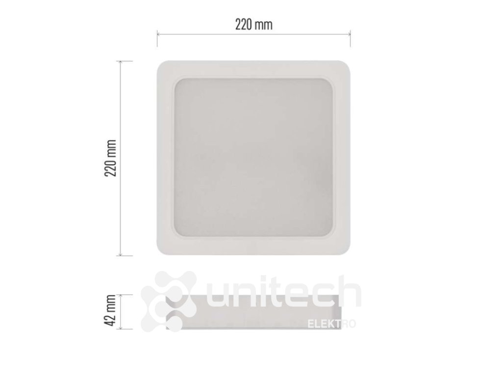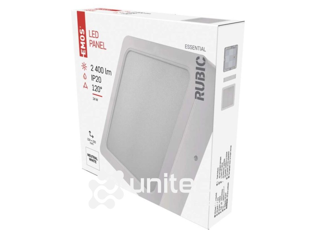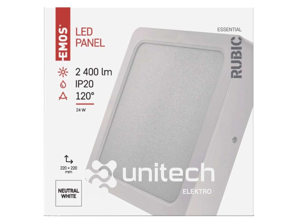 diaľkový ovládač: nie|do chodby a na schodisko: áno|do dielne a garáže: áno|do kancelárie: nie|do kuchyne: áno|do kúpeľne: nie|do obývačky, spálne a detskej izby: nie|dosah senzora: nemá senzor|do záhrady a na balkón: nie|farba svetla: neutrálna biela|farba tela: biela|flicker-free: áno|frekvencia: 50/60 Hz|index podania farieb (CRI): Ra > 80|kategória: ESSENTIAL|krytie: IP20|materiál difúzora: plast (PC)|materiál LGP: neuvádza sa|materiál tela: plast (PC)|montážny otvor: neuvádza sa|možnosť stmievania: nie|náhrada za žiarovku: 145 W|napätie: 220–240 V|pohybový senzor: nie|predajný obal: 1 ks, krabica|príkon: 24 W|prúd: 209 mA|rada: RUBIC|rozmer: 220 × 220 × 42 mm|spôsob montáže: prisadené|svetelná účinnosť: 100 lm/W|svetelný tok: 2 400 lm|teplota chromatičnosti: 4 000 K|tvar: štvorec|typ difúzora: mliečny|typ svietidla: klasické svietidlo|účinník: > 0,7|UGR<: neuvádza sa|uhol vyžarovania: 120°|umiestnenie: stropné/nástenné|výstupný prúd zo zdroja: 50 mA|záručná doba: 2 roky|zdroj svetla: LED|životnosť: 25 000 hodínDodatočné parametre