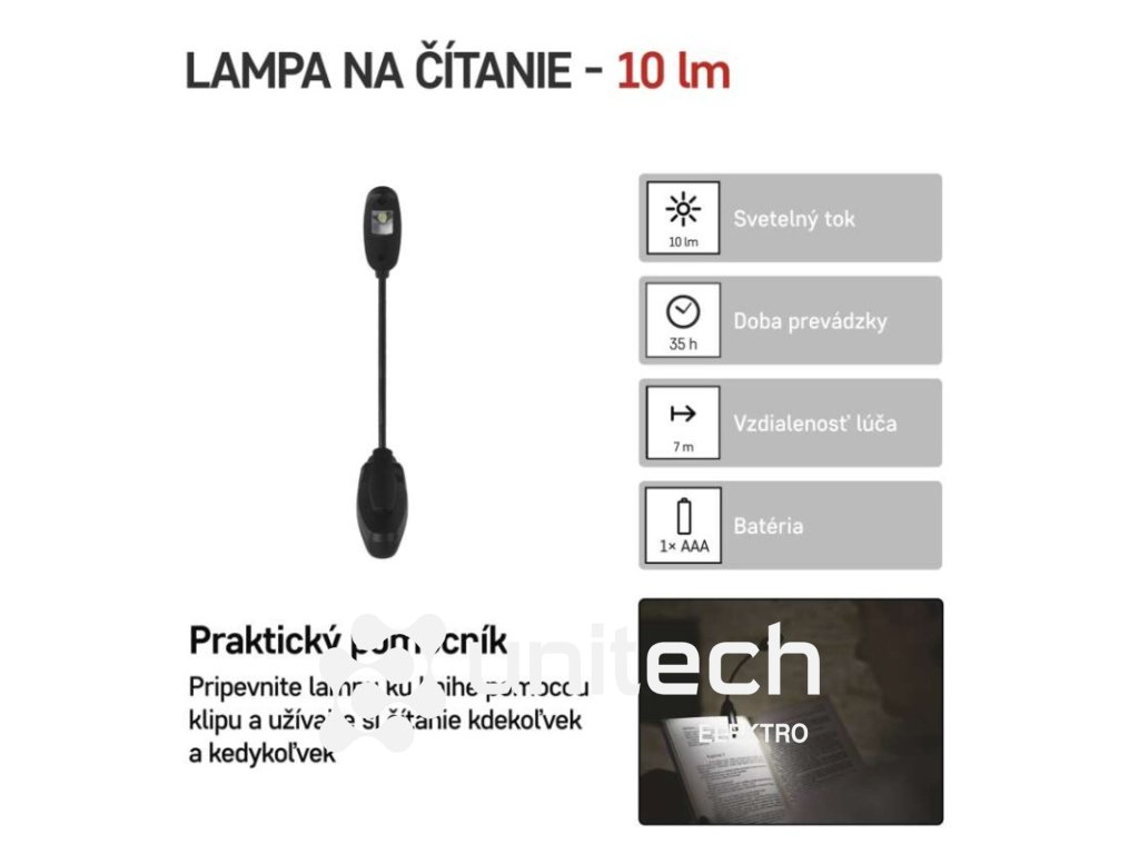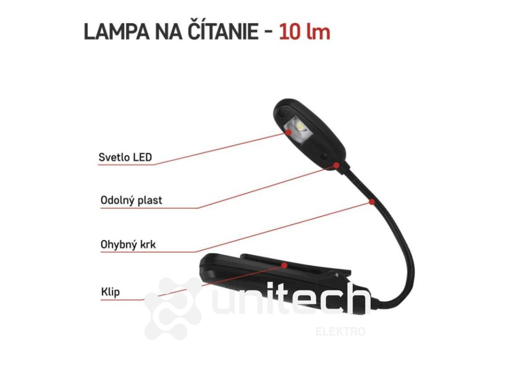 LED svietidlo na čítanie, 10 lm, 1× AAA