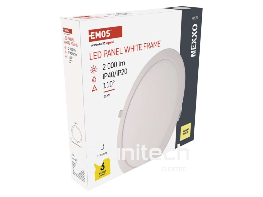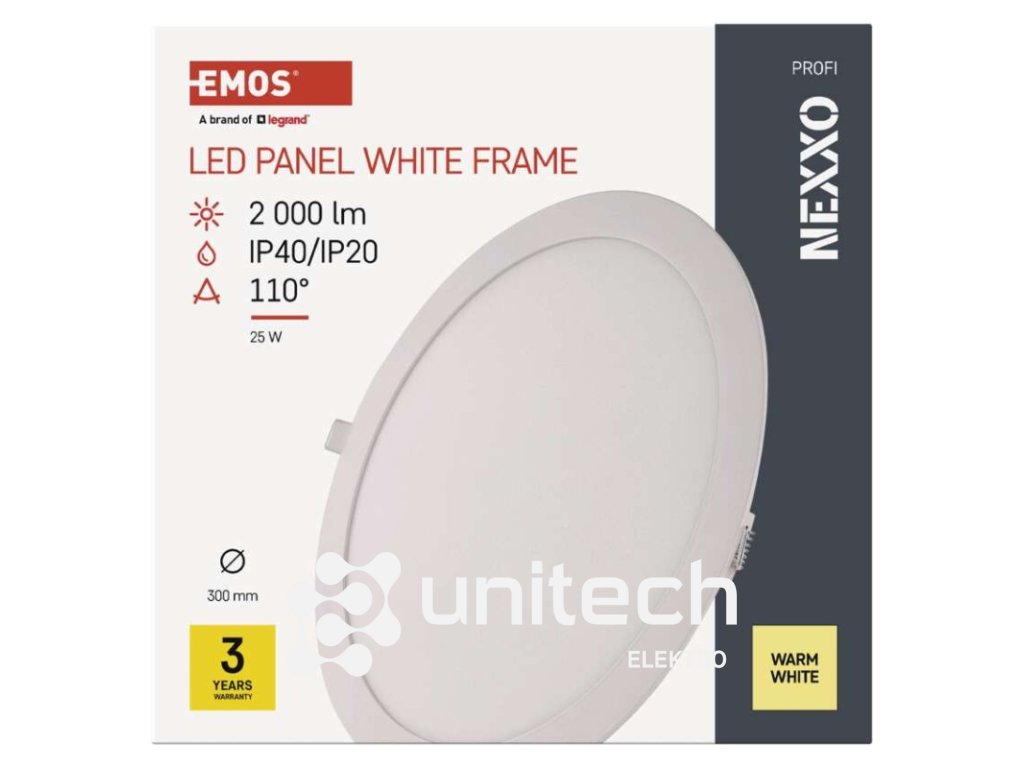 diaľkový ovládač: nie|do chodby a na schodisko: áno|do dielne a garáže: nie|do kancelárie: áno|do kuchyne: áno|do kúpeľne: nie|do obývačky, spálne a detskej izby: áno|dosah senzora: nemá senzor|do záhrady a na balkón: nie|farba svetla: teplá biela|farba tela: biela|flicker-free: áno|frekvencia: 50/60 Hz|index podania farieb (CRI): Ra > 82|kategória: PROFI|krytie: IP40/IP20|materiál difúzora: plast (PS)|materiál LGP: PMMA|materiál tela: hliník|montážny otvor: 280 mm|možnosť stmievania: nie|náhrada za žiarovku: 125 W|napätie: 220–240 V|pohybový senzor: nie|predajný obal: 1 ks, krabica|príkon: 25 W|prúd: 111 mA|rada: NEXXO|rozmer: priemer 300 × 21 mm|spôsob montáže: vstavané|svetelná účinnosť: 83 lm/W|svetelný tok: 2 000 lm|teplota chromatičnosti: 3 000 K|tvar: kruh|typ difúzora: mliečny|typ svietidla: klasické svietidlo|účinník: > 0,9|UGR<: neuvádza sa|uhol vyžarovania: 110°|umiestnenie: stropné|výstupný prúd zo zdroja: 300 mA|záručná doba: 3 roky|zdroj svetla: LED|životnosť: 30 000 hodínDodatočné parametre