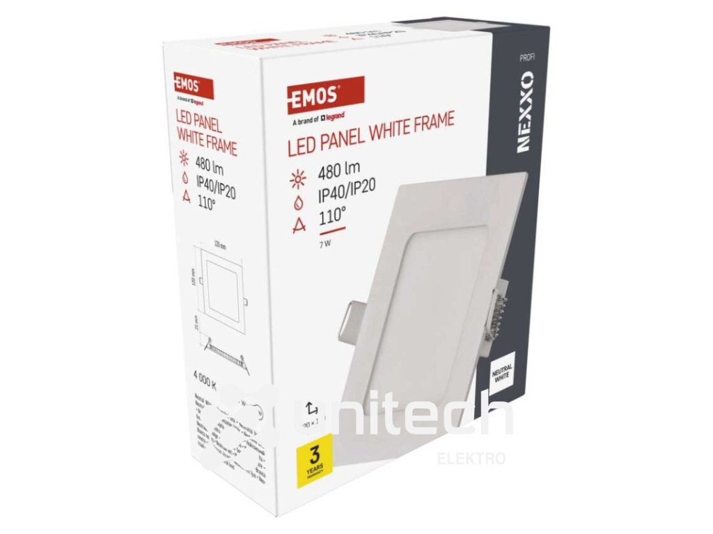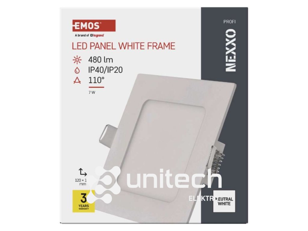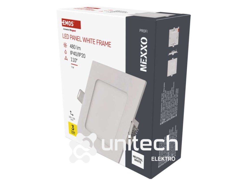 diaľkový ovládač: nie|do chodby a na schodisko: áno|do dielne a garáže: nie|do kancelárie: áno|do kuchyne: áno|do kúpeľne: nie|do obývačky, spálne a detskej izby: áno|dosah senzora: nemá senzor|do záhrady a na balkón: nie|farba svetla: neutrálna biela|farba tela: biela|flicker-free: áno|frekvencia: 50/60 Hz|index podania farieb (CRI): Ra > 82|kategória: PROFI|krytie: IP40/IP20|materiál difúzora: plast (PS)|materiál LGP: PMMA|materiál tela: hliník|montážny otvor: 105 × 105 mm|možnosť stmievania: nie|náhrada za žiarovku: 40 W|napätie: 220–240 V|pohybový senzor: nie|predajný obal: 1 ks, krabica|príkon: 7 W|prúd: 63 mA|rada: NEXXO|rozmer: 120 × 120 × 21 mm|spôsob montáže: vstavané|svetelná účinnosť: 75 lm/W|svetelný tok: 480 lm|teplota chromatičnosti: 4 000 K|tvar: štvorec|typ difúzora: mliečny|typ svietidla: klasické svietidlo|účinník: > 0,5|UGR<: neuvádza sa|uhol vyžarovania: 110°|umiestnenie: stropné|výstupný prúd zo zdroja: 300 mA|záručná doba: 3 roky|zdroj svetla: LED|životnosť: 30 000 hodínDodatočné parametre