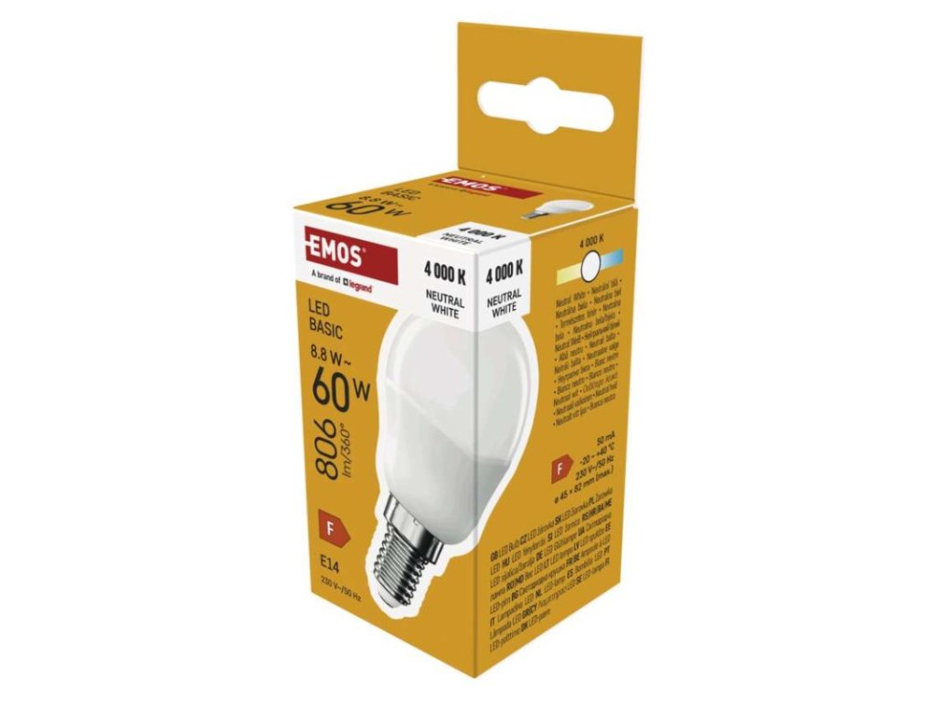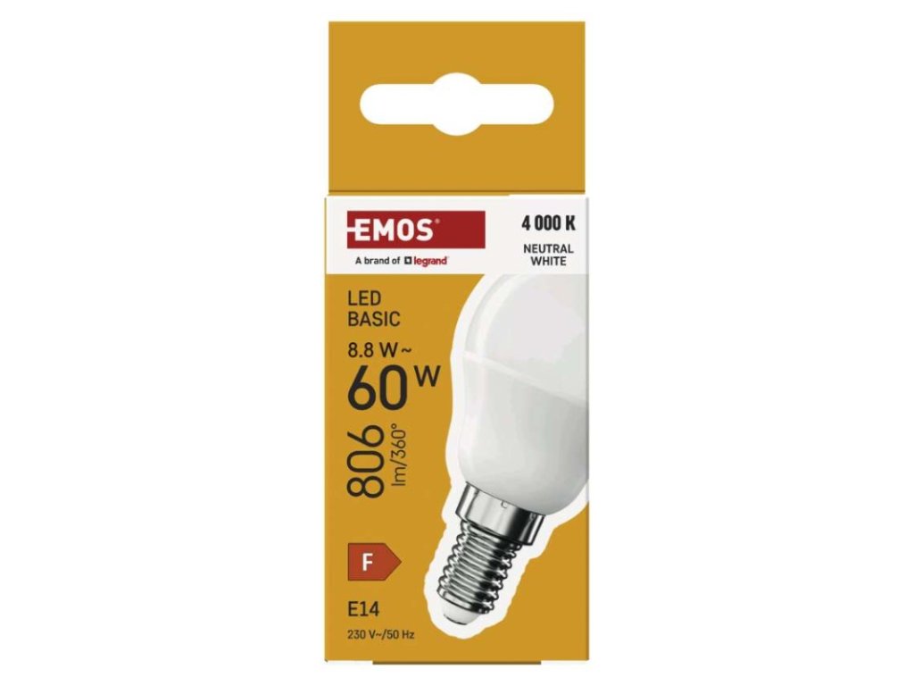 energetická trieda: F|farba svetla: neutrálna biela|index podania farieb (CRI): Ra >80|kompatibilita: –|náhrada za žiarovku: 60 W|napätie: 230 V~/50 Hz|notifikácie do mobilnej aplikácie: nie|ovládanie hlasovými asistentmi: nie|pätica (uchytenie žiarovky): E14|počet čipov: neuvádza sa|počet spínacích cyklov: 20 000|podporované OS: –|predajný obal: 1 ks, krabička|prenosová frekvencia: –|príkon: 8,8 W|protokol: –|rada: BASIC|rozmer: #|stmievateľná: nie|svetelná účinnosť: 92 lm/W|svetelný tok: 806 lm|technológia: LED|teplota chromatičnosti: 4 000 K|tvar: Mini Globe|typ čipov: SMD|účinník: 0.50|uhol vyžarovania: 180°|záručná doba: 2 roky|životnosť: 20 000 hodínDodatočné parametre