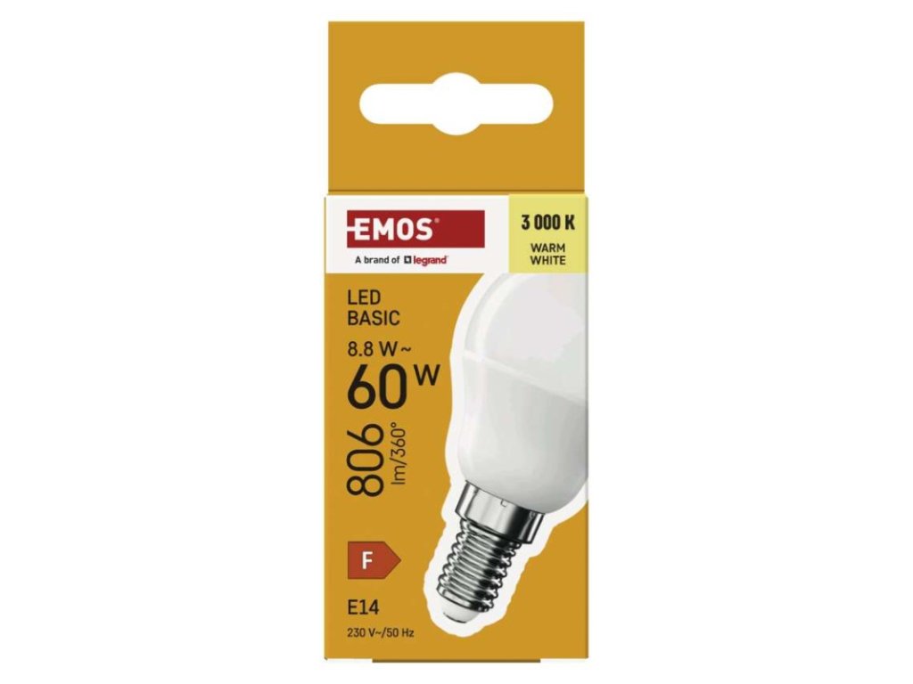 energetická trieda: F|farba svetla: teplá biela|index podania farieb (CRI): Ra >80|kompatibilita: –|náhrada za žiarovku: 60 W|napätie: 230 V~/50 Hz|notifikácie do mobilnej aplikácie: nie|ovládanie hlasovými asistentmi: nie|pätica (uchytenie žiarovky): E14|počet čipov: neuvádza sa|počet spínacích cyklov: 20 000|podporované OS: –|predajný obal: 1 ks, krabička|prenosová frekvencia: –|príkon: 8,8 W|protokol: –|rada: BASIC|rozmer: #|stmievateľná: nie|svetelná účinnosť: 92 lm/W|svetelný tok: 806 lm|technológia: LED|teplota chromatičnosti: 3 000 K|tvar: Mini Globe|typ čipov: SMD|účinník: 0.50|uhol vyžarovania: 180°|záručná doba: 2 roky|životnosť: 20 000 hodínDodatočné parametre