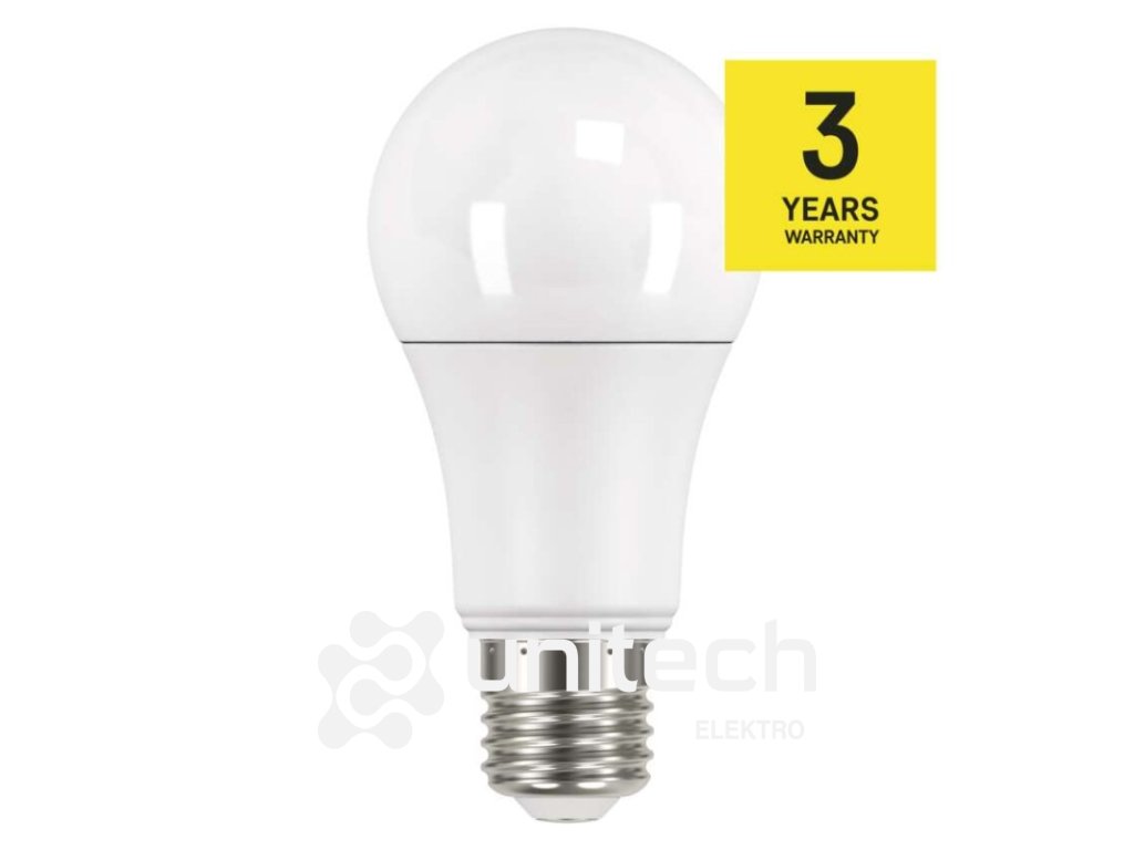 energetická trieda: F|farba svetla: teplá biela|index podania farieb (CRI): 83|kompatibilita: –|náhrada za žiarovku: 75 W|napätie: 230 V~/50 Hz|notifikácie do mobilnej aplikácie: –|ovládanie hlasovými asistentmi: –|pätica (uchytenie žiarovky): E27|počet čipov: neuvádza sa|počet spínacích cyklov: 25 000|podporované OS: –|predajný obal: 1 ks, krabička|prenosová frekvencia: –|príkon: 10,7 W|protokol: –|rada: CLASSIC|rozmer: 120 × 60 × 60 mm|stmievateľná: nie|svetelná účinnosť: 99 lm/W|svetelný tok: 1 060 lm|technológia: LED|teplota chromatičnosti: 2 700 K|tvar: A60|typ čipov: SMD|účinník: 0,56|uhol vyžarovania: 180°|záručná doba: 3 roky|životnosť: 30 000 hodínDodatočné parametre