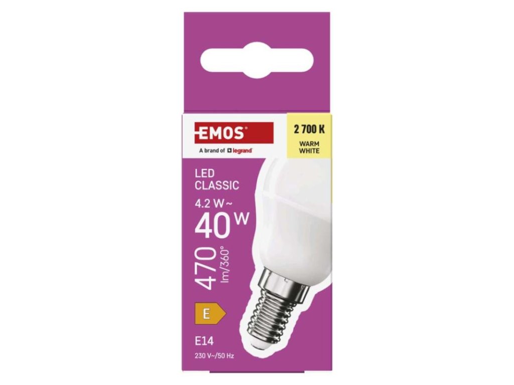 energetická trieda: E|farba svetla: teplá biela|index podania farieb (CRI): Ra >80|kompatibilita: –|náhrada za žiarovku: 40 W|napätie: 230 V~/50 Hz|notifikácie do mobilnej aplikácie: nie|ovládanie hlasovými asistentmi: nie|pätica (uchytenie žiarovky): E14|počet čipov: neuvádza sa|počet spínacích cyklov: 30 000|podporované OS: –|predajný obal: 1 ks, krabička|prenosová frekvencia: –|príkon: 4,2 W|protokol: –|rada: CLASSIC|rozmer: 45 × 45 × 82 mm|stmievateľná: nie|svetelná účinnosť: 112 lm/W|svetelný tok: 470 lm|technológia: LED|teplota chromatičnosti: 2 700 K|tvar: Mini Globe|typ čipov: SMD|účinník: 0.50|uhol vyžarovania: 150°|záručná doba: 3 roky|životnosť: 30 000 hodínDodatočné parametre