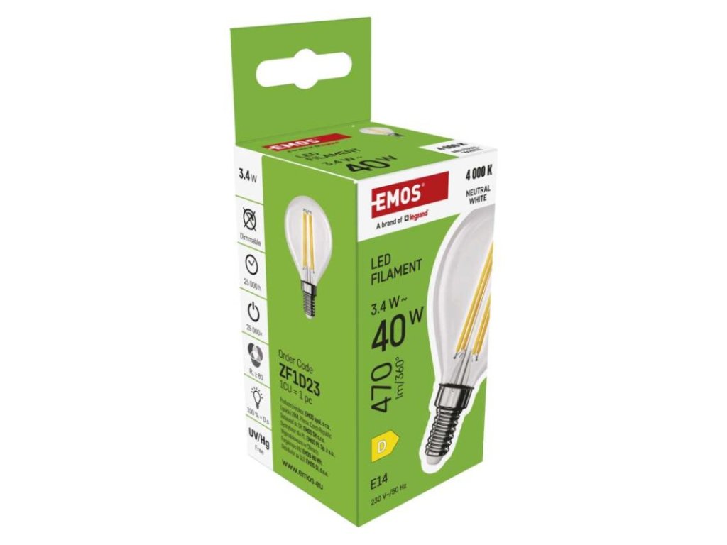 energetická trieda: D|farba svetla: neutrálna biela|index podania farieb (CRI): Ra >80|kompatibilita: –|náhrada za žiarovku: 40 W|napätie: 230 V~/50 Hz|notifikácie do mobilnej aplikácie: nie|ovládanie hlasovými asistentmi: nie|pätica (uchytenie žiarovky): E14|počet čipov: 4|počet spínacích cyklov: 25 000|podporované OS: –|predajný obal: 1 ks, krabička|prenosová frekvencia: –|príkon: 3,4 W|protokol: –|rada: FILAMENT|rozmer: 80 × 45 × 45 mm|stmievateľná: nie|svetelná účinnosť: 138 lm/W|svetelný tok: 470 lm|technológia: LED|teplota chromatičnosti: 4 000 K|tvar: Mini Globe|typ čipov: COB|účinník: 0.50|uhol vyžarovania: 360°|záručná doba: 3 roky|životnosť: 25 000 hodínDodatočné parametre