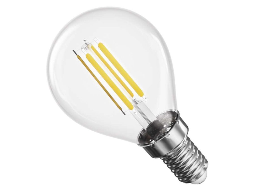 energetická trieda: D|farba svetla: teplá biela|index podania farieb (CRI): Ra >80|kompatibilita: neuvádza sa|náhrada za žiarovku: 75 W|napätie: 230 V~/50 Hz|notifikácie do mobilnej aplikácie: neuvádza sa|ovládanie hlasovými asistentmi: neuvádza sa|pätica (uchytenie žiarovky): E14|počet čipov: neuvádza sa|počet spínacích cyklov: 25 000|podporované OS: neuvádza sa|predajný obal: 1 ks, krabička|prenosová frekvencia: neuvádza sa|príkon: 7 W|protokol: neuvádza sa|rada: FILAMENT|rozmer: 45 × 45 × 80 mm|stmievateľná: nie|svetelná účinnosť: 151 lm/W|svetelný tok: 1 055 lm|technológia: LED|teplota chromatičnosti: 2 700 K|tvar: Mini Globe|typ čipov: COB|účinník: 0,5|uhol vyžarovania: 360°|záručná doba: 3 roky|životnosť: 25 000 hodínDodatočné parametre