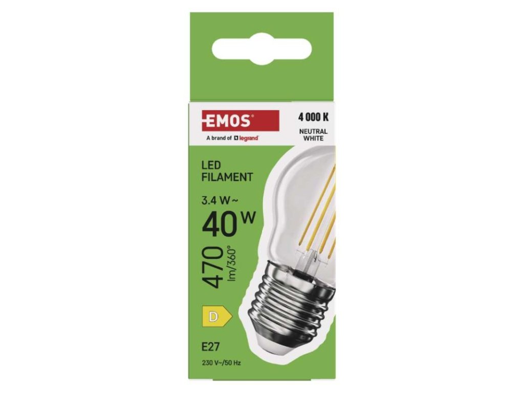 energetická trieda: D|farba svetla: neutrálna biela|index podania farieb (CRI): Ra >80|kompatibilita: –|náhrada za žiarovku: 40 W|napätie: 230 V~/50 Hz|notifikácie do mobilnej aplikácie: nie|ovládanie hlasovými asistentmi: nie|pätica (uchytenie žiarovky): E27|počet čipov: 4|počet spínacích cyklov: 25 000|podporované OS: –|predajný obal: 1 ks, krabička|prenosová frekvencia: –|príkon: 3,4 W|protokol: –|rada: FILAMENT|rozmer: 78 × 45 × 45 mm|stmievateľná: nie|svetelná účinnosť: 138 lm/W|svetelný tok: 470 lm|technológia: LED|teplota chromatičnosti: 4 000 K|tvar: Mini Globe|typ čipov: COB|účinník: 0.50|uhol vyžarovania: 360°|záručná doba: 3 roky|životnosť: 25 000 hodínDodatočné parametre