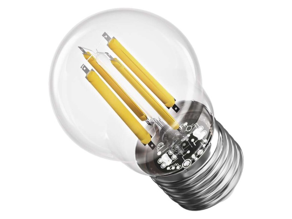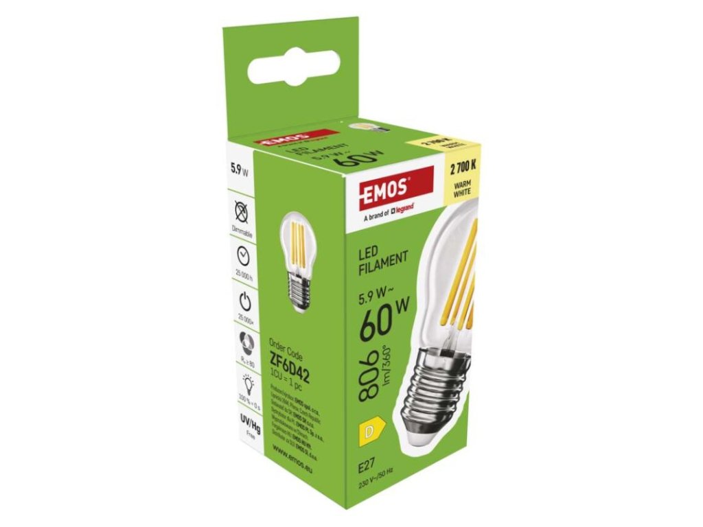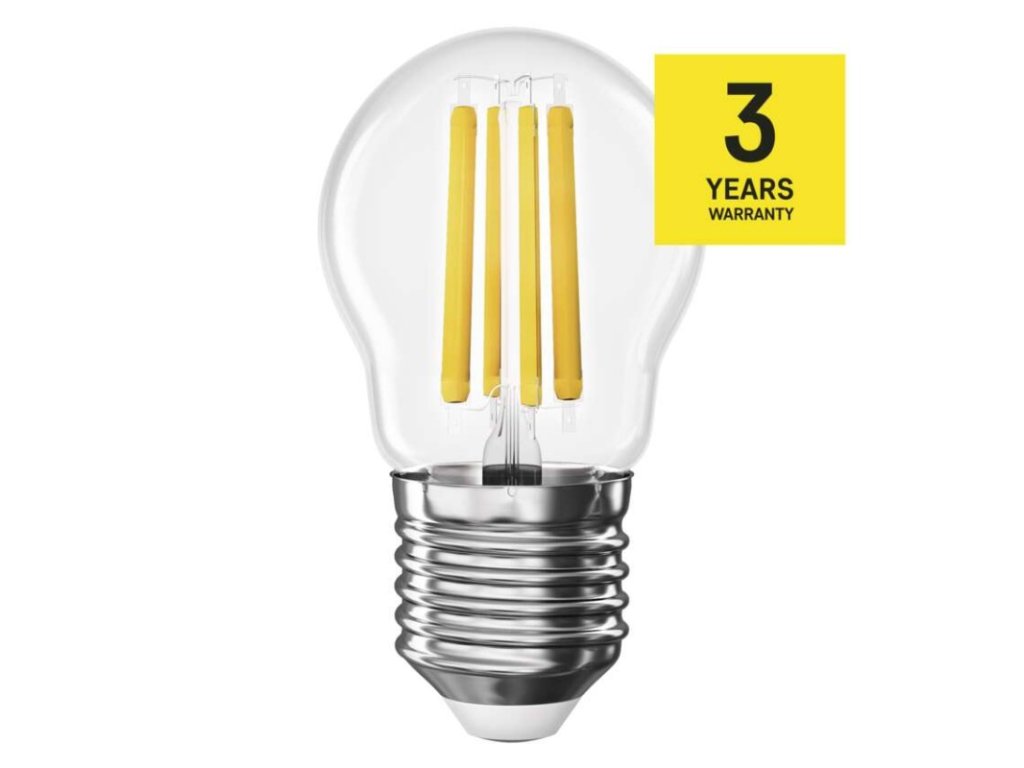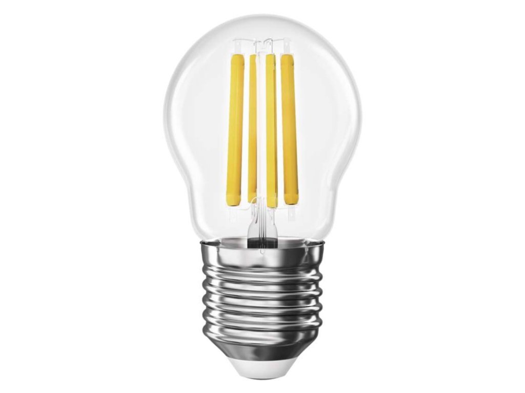 energetická trieda: D|farba svetla: teplá biela|index podania farieb (CRI): Ra >80|kompatibilita: –|náhrada za žiarovku: 60 W|napätie: 230 V~/50 Hz|notifikácie do mobilnej aplikácie: nie|ovládanie hlasovými asistentmi: nie|pätica (uchytenie žiarovky): E27|počet čipov: 4|počet spínacích cyklov: 25 000|podporované OS: –|predajný obal: 1 ks, krabička|prenosová frekvencia: –|príkon: 5,9 W|protokol: –|rada: FILAMENT|rozmer: 78 × 45 × 45 mm|stmievateľná: nie|svetelná účinnosť: 137 lm/W|svetelný tok: 806 lm|technológia: LED|teplota chromatičnosti: 2 700 K|tvar: Mini Globe|typ čipov: COB|účinník: 0.50|uhol vyžarovania: 360°|záručná doba: 3 roky|životnosť: 25 000 hodínDodatočné parametre
