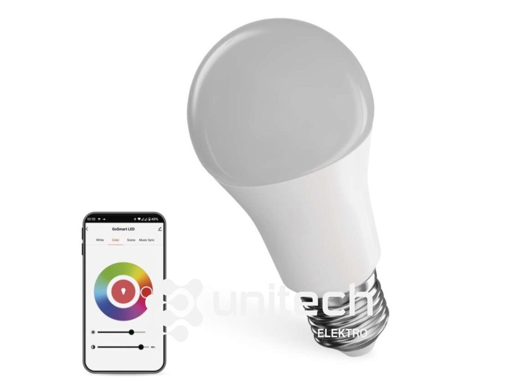LED žiarovka GoSmart A60 / E27 / 9 W (60 W) / 806 lm / RGB / stmievateľná / WiFi