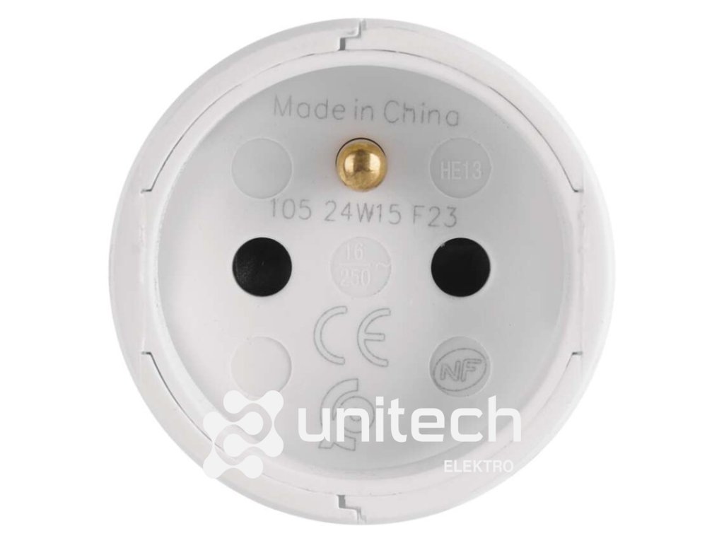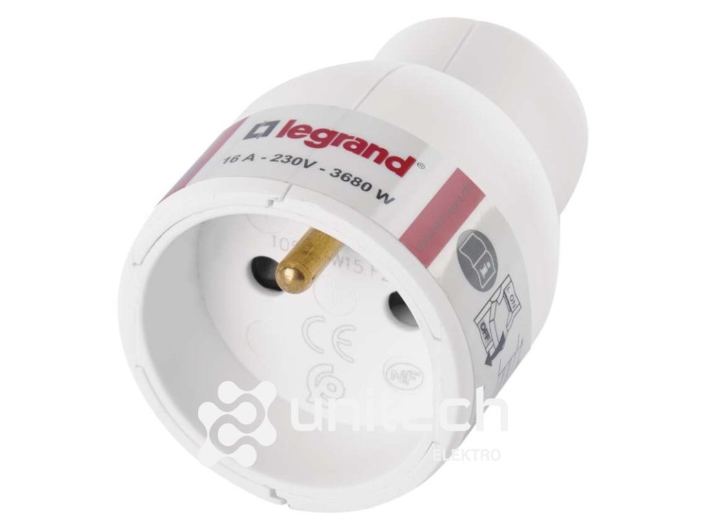 detské clonky: áno|diaľkový ovládač: –|dosah signálu: –|easy learning: –|farba: biela|krytie: IP20|materiál: plast|max. záťaž: 3 680 W|možnosť ovládania: –|napätie/prúd: 250 V~/16 A max.|počet pólov: –|počet zásuviek: 1|pozície ochranného kontaktu: –|predajný obal: 1 ks, nálepka|prenosová frekvencia: –|produkt: LEGRAND vidlica|typ: FRENCH|vonkajšie použitie: nie|vypínač: nieDodatočné parametre