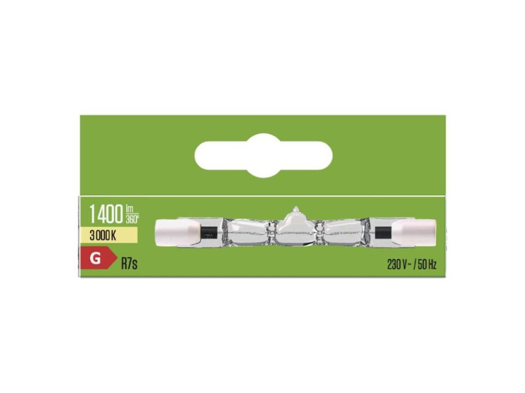 energetická trieda: G|farba svetla: teplá biela|index podania farieb (CRI): Ra >99|kompatibilita: –|náhrada za žiarovku: 94 W|napätie: 230 V~/50 Hz|notifikácie do mobilnej aplikácie: –|ovládanie hlasovými asistentmi: –|pätica (uchytenie žiarovky): R7s|počet čipov: neuvádza sa|počet spínacích cyklov: 8 000|podporované OS: –|predajný obal: 1 ks, krabička|prenosová frekvencia: –|príkon: 80 W|protokol: –|rada: HALOGEN|rozmer: 8 × 78 × 8 mm|stmievateľná: áno|svetelná účinnosť: 18 lm/W|svetelný tok: 1 400 lm|technológia: ECO halogén|teplota chromatičnosti: 3 000 K|tvar: J78|typ čipov: neuvádza sa|účinník: 1|uhol vyžarovania: 360°|záručná doba: 2 roky|životnosť: 4 000 hodínDodatočné parametre