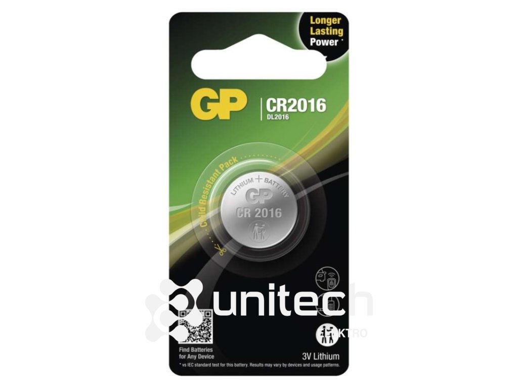 chemické zloženie: líthiové|hmotnosť: 1,5 g|kapacita: 90 mAh|kategória/rada: Lithium|max. skladovateľnosť: 10 rokov|možnosť nabíjania: nie|napätie: 3 V|počet nabíjacích cyklov: nenabíjacie|predajný obal: 1 ks, blister|prevádzková teplota: -20 °C až +60 °C|rozmer: 20,0 × 1,6 mm|typové označenie: GP CR2016|veľkosť batérie: neuvádza sa|značka: GPDodatočné parametre