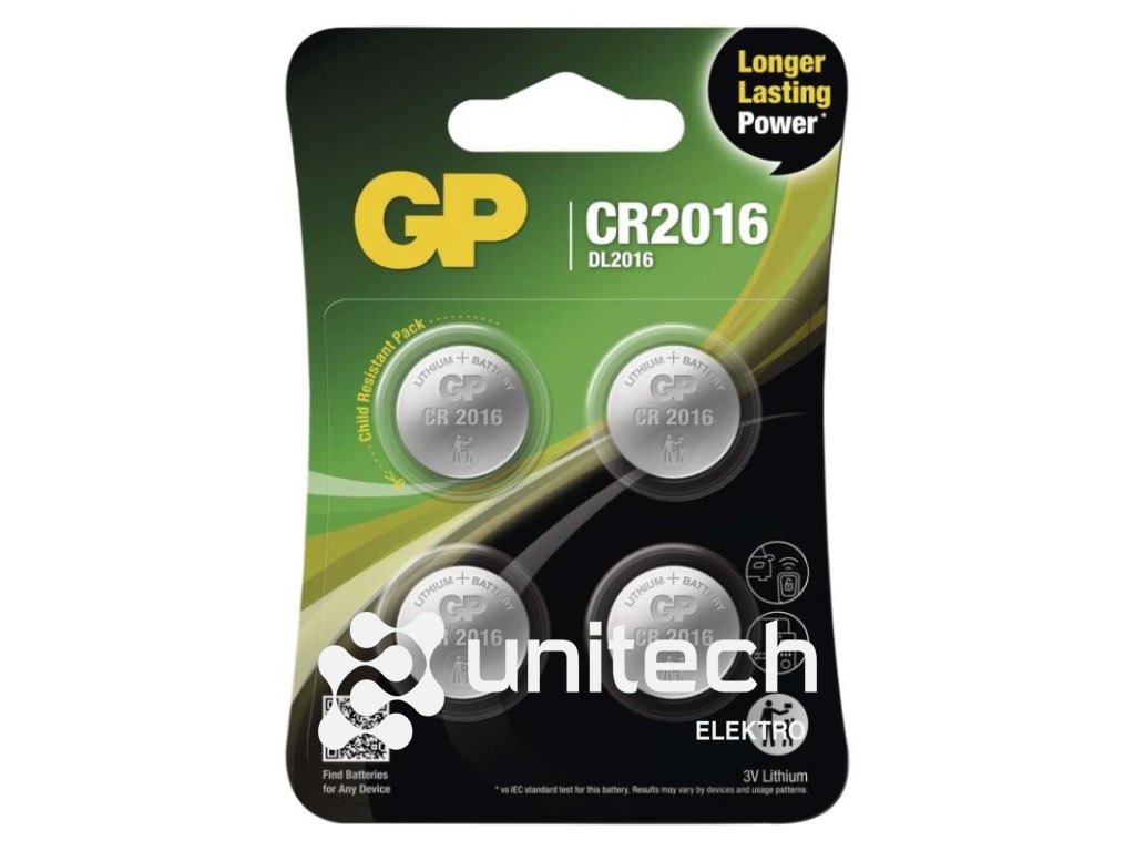 Lítiová gombíková batéria GP CR2016, 4 ks