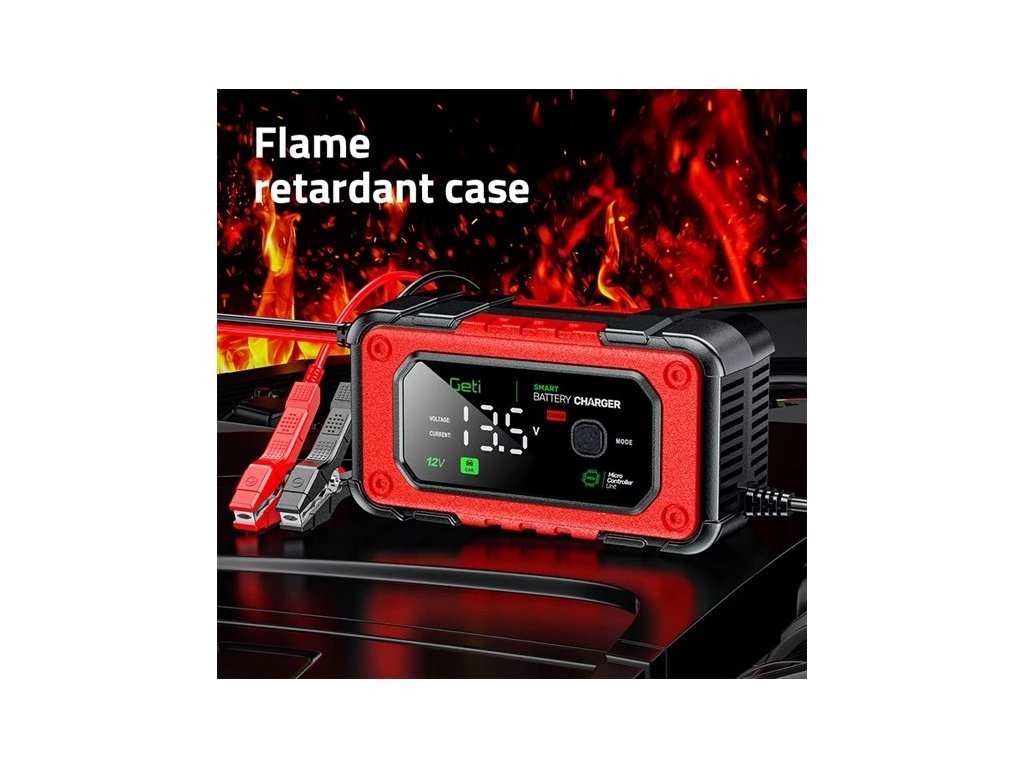 Nabíjačka GETI GCA004 je inteligentná automatická nabíjačka batérií, ktorá je navrhnutá pre nabíjanie 12V olovených akumulátorov AGM, GEL, SLA, EFB, WET atď. a LiFePO4 batérií s kapacitou 4Ah - 140Ah (12 V). Tieto akumulátory sa nachádzajú vo vozidlách, motocykloch, lodiach, záložných zdrojoch alebo snežných skútroch. Automaticky diagnostikuje stav akumulátora, zvolí vhodné nabíjacie napätie a začne nabíjanie. Pri ukončení nabíjania prejde nabíjačka do udržiavacieho režimu, čím sa zabráni poškodeniu akumulátora prebitím a uchová ho v nabitom a pripravenom stave.