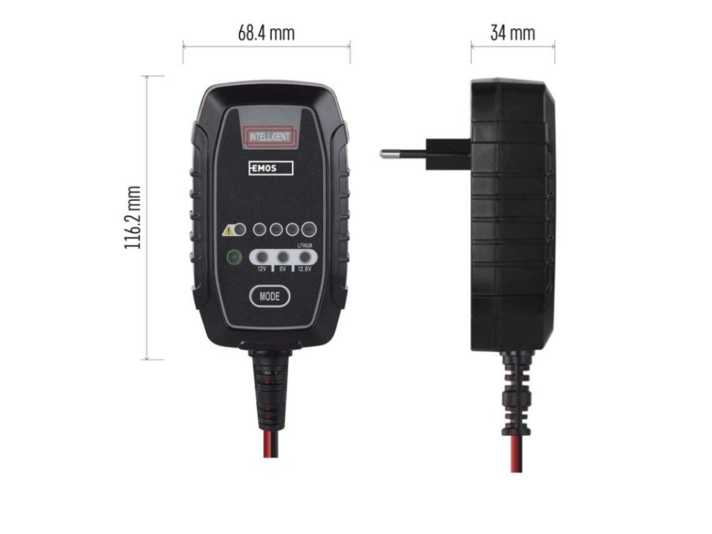 hmotnosť: 255 g|indikácia nabíjania: LED|krokov nabíjania: 7|krytie: IP65 (kryt nabíjačky)|nabíjací: 6 V (1,2 Ah–30 Ah), 12 V (1,2 Ah–30 Ah); 12,8 V LiFePO4 (2 Ah–15 Ah)|nabíjacie napätie: 7,3 V/14,5 V DC|nabíjací kábel: #|nabíjací prúd: 0,8 A +/-10 %|ochrana proti skratu a prepólovaniu: áno|predajný obal: 1 ks, krabica|program pre chladné počasie: nie|režim desulfatácie: áno|riadenie nabíjania: riadené internou MCU, diagnostikuje pripojený aku a automaticky ho nabíja, udržuje, bráni prehriatiu|udržiavací režim: áno|určené pre: automobily, motocykle, záložný aku, olovený aku WET (kyselinové), MF (bezúdržbové), VRLA, AGM i GEL a 12,8 V LiFePO4|vstup: 220–240 V AC/50 Hz/300 mA|výstupný prúd: 0,8 ADodatočné parametre