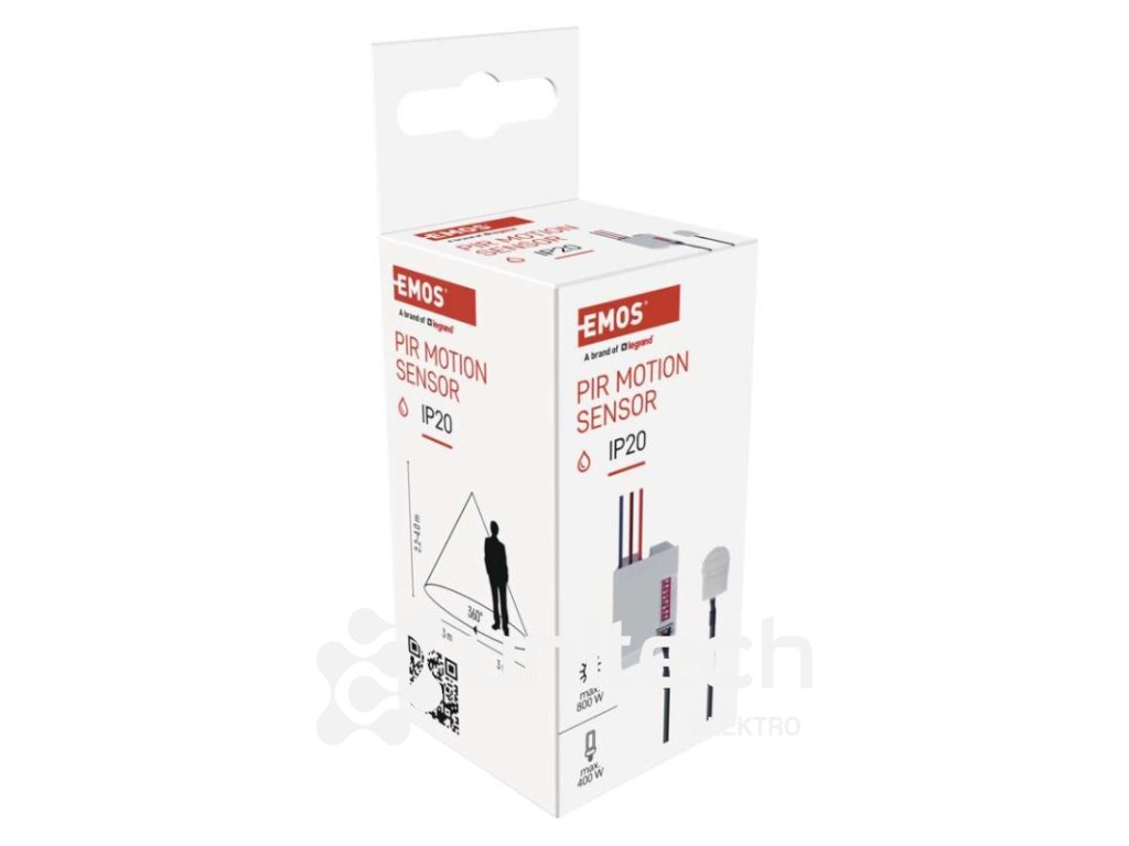 citlivosť: 3/2000 Lux|detekčný dosah: 6 m|detekčný uhol: 360°|doba zopnutia: 5 s, 30 s, 1 min, 3 min, 5 min, 8 min|farba: biela|krytie: IP20|max. záťaž kapacitná: 400 W|max. záťaž odporová: 800 W|napájanie: 230 V~/50 Hz|predajný obal: 1 ks, krabička|rozmer: 55 × 37 × 22 mm|typ senzora: PIRDodatočné parametre