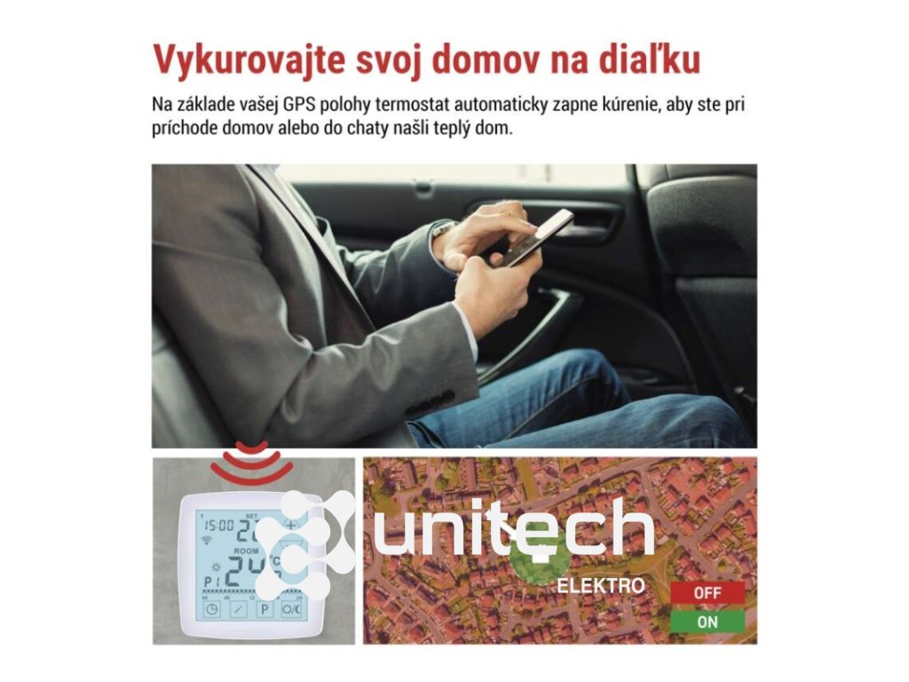 | typ ovládania: | programovateľný elektronický izbový termostat, možnosť ovládania cez mobil (iOS, Android) |
