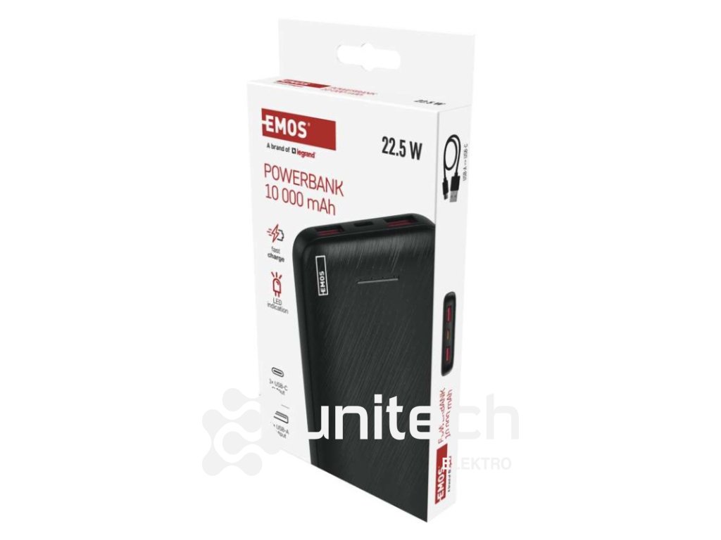 Power bank EMOS AlphaQ3, 10 000 mAh, 22,5 W, čierny