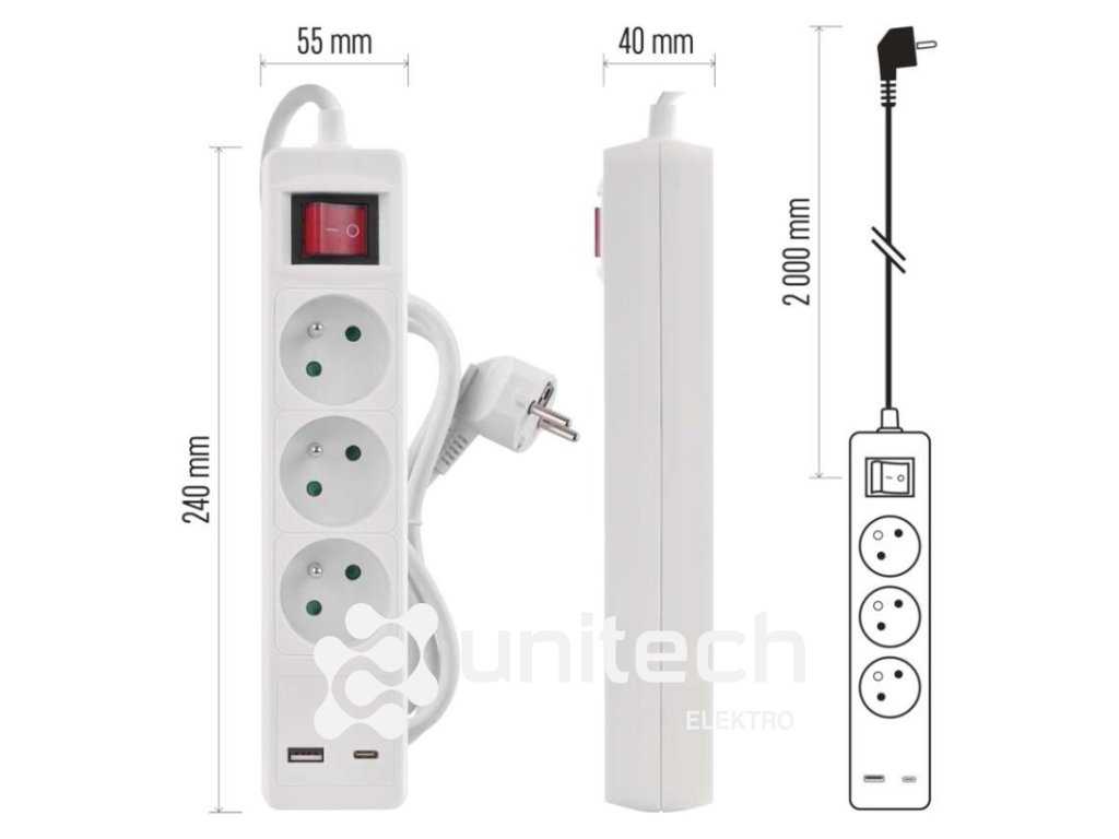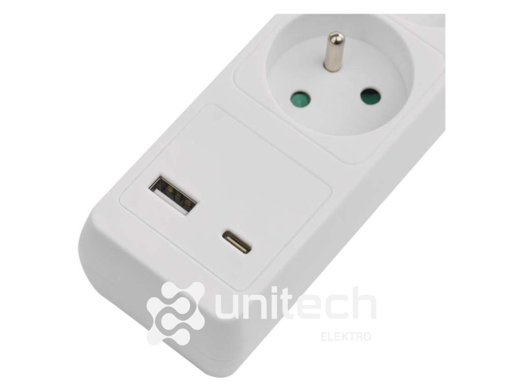 ďalšie funkcie: nie|detské clonky: áno|dĺžka: 2 m|farba: biela|jazyky aplikácie: –|kompatibilita: –|krytie: IP20|materiál zásuvky a vidlice: plast|max. záťaž: 3 680 W|napätie: 250 V~|notifikácie do mobilnej aplikácie: nie|ovládanie hlasovými asistentmi: nie|počet zásuviek: 3× 2P + PE|podporované OS: –|predajný obal: 1 ks, záves|prenosová frekvencia: –|prierez vodiča: 1,5 mm²|protokol: –|prúd: 16 A max.|typ izolácie: PVC|USB výstup: 1× USB-A, 1× USB-C, total: 3,4 A – 17 W|vodič: H05VV-F3G|vypínač: ánoDodatočné parametre