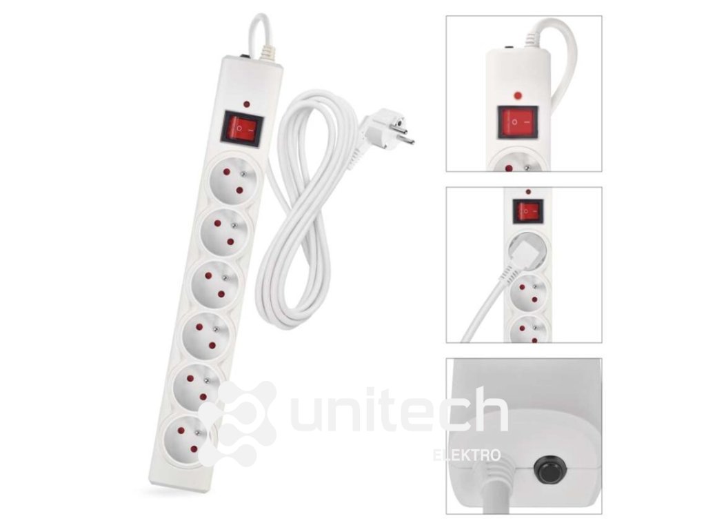 Prepäťová ochrana – 6 zásuviek, 3 m, biela