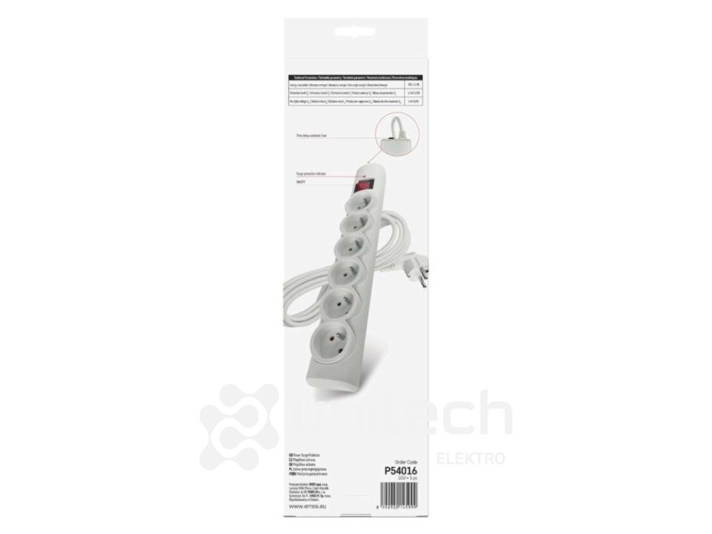 absorpcia energie: 380 J L-N|anténny (koaxiálna ochrana): nie|detské clonky: áno|dĺžka: 3 m|doba odozvy: 1 ns|EMI / RFI filter: nie|farba: biela|garancia: 2 000 €|indikátor prepätia: áno|indikátor zapojenia: nie|istený: poistka s čas. onesk. 10 A/250 V~|max. prúdová záťaž: 10 A max.|max. záťaž: 2 300 W|menovité napätie: 250 V~, 50 Hz|ochrana proti preťaženiu: áno, 10 A/ 250V~|ochranná úroveň Up: 1,3 kV (L/N)|počet zásuviek: 6× 2P + PE|predajný obal: 1 ks, krabica|rozmer: 358 × 53 × 40 mm|rozsah kmitočtu: neuvádza sa|skúšobná vlna U0c: 6 kV (L/N)|tel. / Fax / DSL ochrana: nie|USB výstup: nie|útlm: neuvádza sa|vodič: H05VV-F3G 1,0 mm²Dodatočné parametre