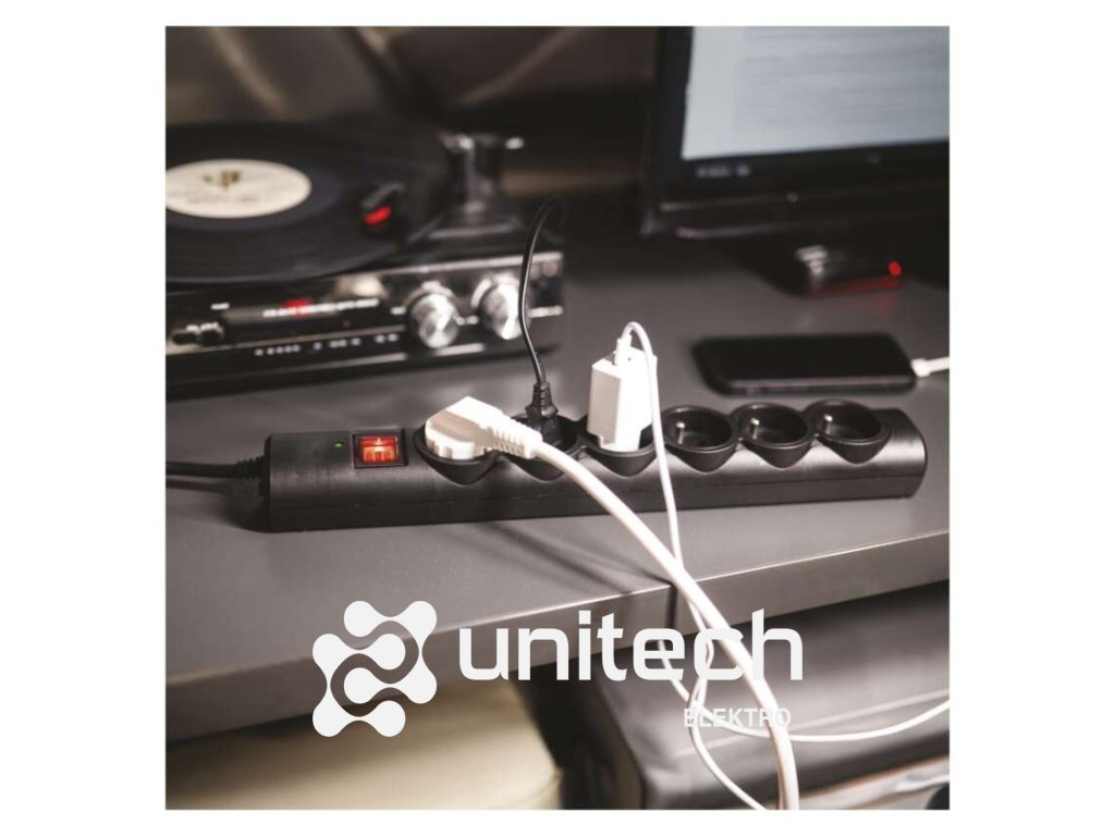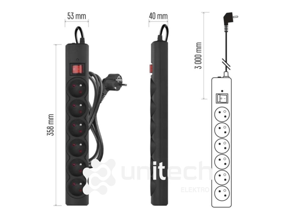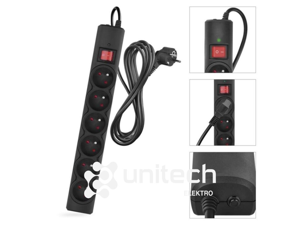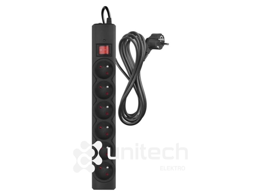 Prepäťová ochrana – 6 zásuviek, 3 m, čierna