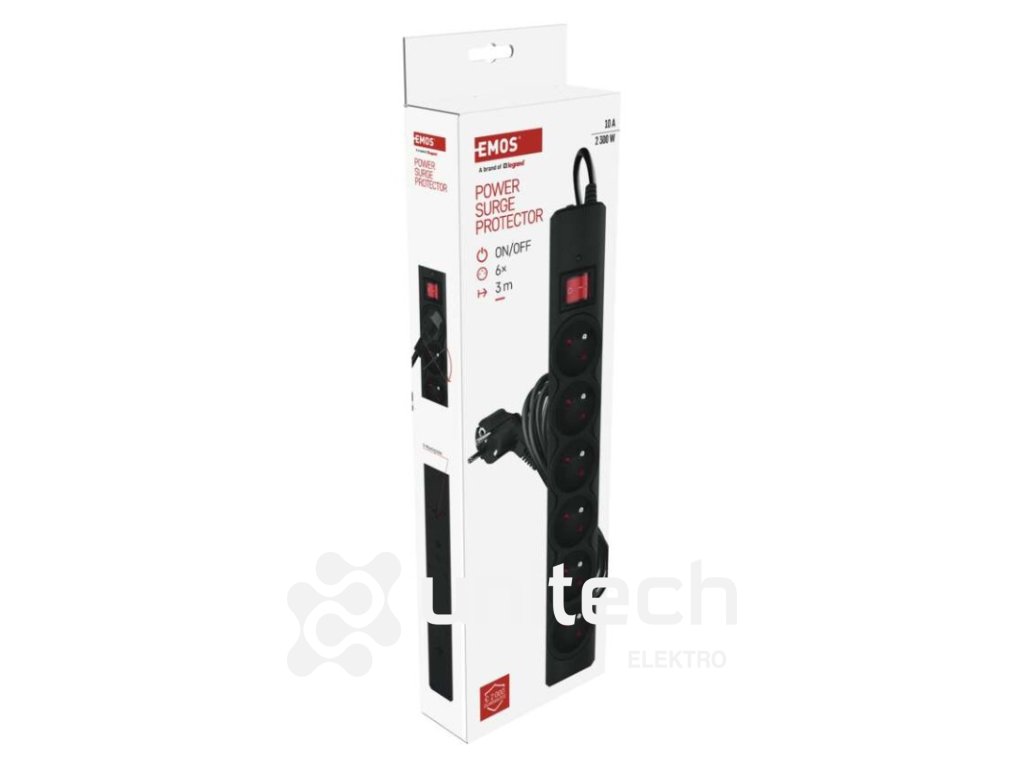 absorpcia energie: 380 J L-N|anténny (koaxiálna ochrana): nie|detské clonky: áno|dĺžka: 3 m|doba odozvy: 1 ns|EMI / RFI filter: nie|farba: čierna|garancia: 2 000 €|indikátor prepätia: áno|indikátor zapojenia: nie|istený: –|max. prúdová záťaž: 10 A max.|max. záťaž: 2 300 W|menovité napätie: 250 V~, 50 Hz|ochrana proti preťaženiu: áno, 10 A/ 250V~|ochranná úroveň Up: 1,3 kV (L/N)|počet zásuviek: 6× 2P + PE|predajný obal: 1 ks, krabica|rozmer: 358 × 53 × 40 mm|rozsah kmitočtu: neuvádza sa|skúšobná vlna U0c: 6 kV (L/N)|tel. / Fax / DSL ochrana: nie|USB výstup: nie|útlm: neuvádza sa|vodič: H05VV-F3G 1,0 mm²Dodatočné parametre
