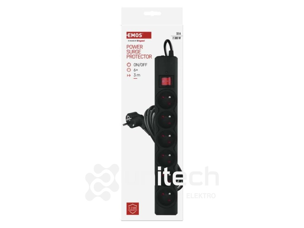 absorpcia energie: 380 J L-N|anténny (koaxiálna ochrana): nie|detské clonky: áno|dĺžka: 3 m|doba odozvy: 1 ns|EMI / RFI filter: nie|farba: čierna|garancia: 2 000 €|indikátor prepätia: áno|indikátor zapojenia: nie|istený: poistka s čas. onesk. 10 A/250 V~|max. prúdová záťaž: 10 A max.|max. záťaž: 2 300 W|menovité napätie: 250 V~, 50 Hz|ochrana proti preťaženiu: áno, 10 A/ 250V~|ochranná úroveň Up: 1,3 kV (L/N)|počet zásuviek: 6× 2P + PE|predajný obal: 1 ks, krabica|rozmer: 358 × 53 × 40 mm|rozsah kmitočtu: neuvádza sa|skúšobná vlna U0c: 6 kV (L/N)|tel. / Fax / DSL ochrana: nie|USB výstup: nie|útlm: neuvádza sa|vodič: H05VV-F3G 1,0 mm²Dodatočné parametre