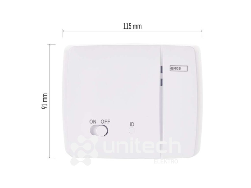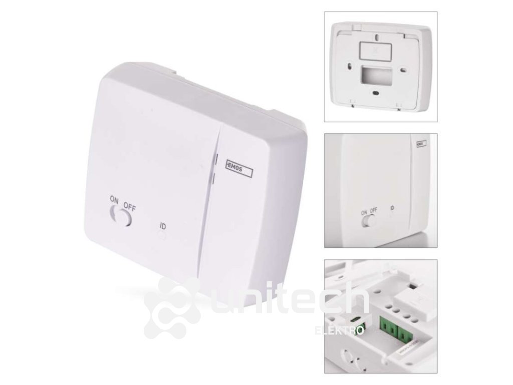 dĺžka kapilárneho čidla: neuvádza sa|dosah vo voľnom priestore: 100 m|druh regulácie: neuvádza sa|farba: biela|funkcia ON/OFF: neuvádza sa|funkcia prázdniny: neuvádza sa|funkcia Set-back: neuvádza sa|jazyky aplikácie: –|kalibrácia teploty: neuvádza sa|kompatibilita: –|meranie teploty: neuvádza sa|možnosť prepojenia s ďalšími detektormi: neuvádza sa|napájanie: neuvádza sa|napájanie brány: neuvádza sa|napájanie prijímača: 230 V AC|napájanie vysielača: neuvádza sa|nastavenie teploty: neuvádza sa|nastaviteľný rozptyl teploty: neuvádza sa|notifikácie do mobilnej aplikácie: –|ochrana proti zamrznutiu: neuvádza sa|ovládanie hlasovými asistentmi: –|počet programov: neuvádza sa|podlahový senzor: –|podporované OS: –|podsvietený displej: neuvádza sa|pracovná frekvencia: 868 MHz|predajný obal: 1 ks, krabička|prenosová frekvencia: –|protokol: –|rozmer: neuvádza sa|rozmer brány: neuvádza sa|rozmer prijímača: 37 × 115 × 91 mm|rozmer vysielača: neuvádza sa|spínaná záťaž: 16 A odporovo, 5 A induktívne|spínanie: 230 V AC alebo beznapäťové|súčasť balenia: neuvádza sa|typ nastavenia teploty: neuvádza sa|typ ovládania: neuvádza sa|typ termostatu: bezdrôtový s OpenTherm komunikáciouDodatočné parametre