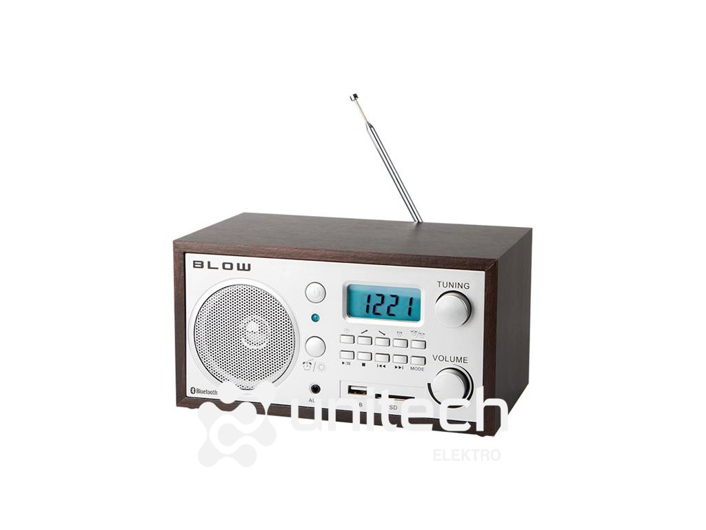 Kompaktné rádio BLOW so základnými funkciami, ktoré umožňujú príjem rozhlasových staníc vo frekvenciách AM/FM, funkcií Bluetooth a konektormi USB, AUX a SD. Zariadenie je veľmi jednoduché a intuitívne na ovládanie. Rádio skvele zapadne do každej miestnosti alebo kuchyne.