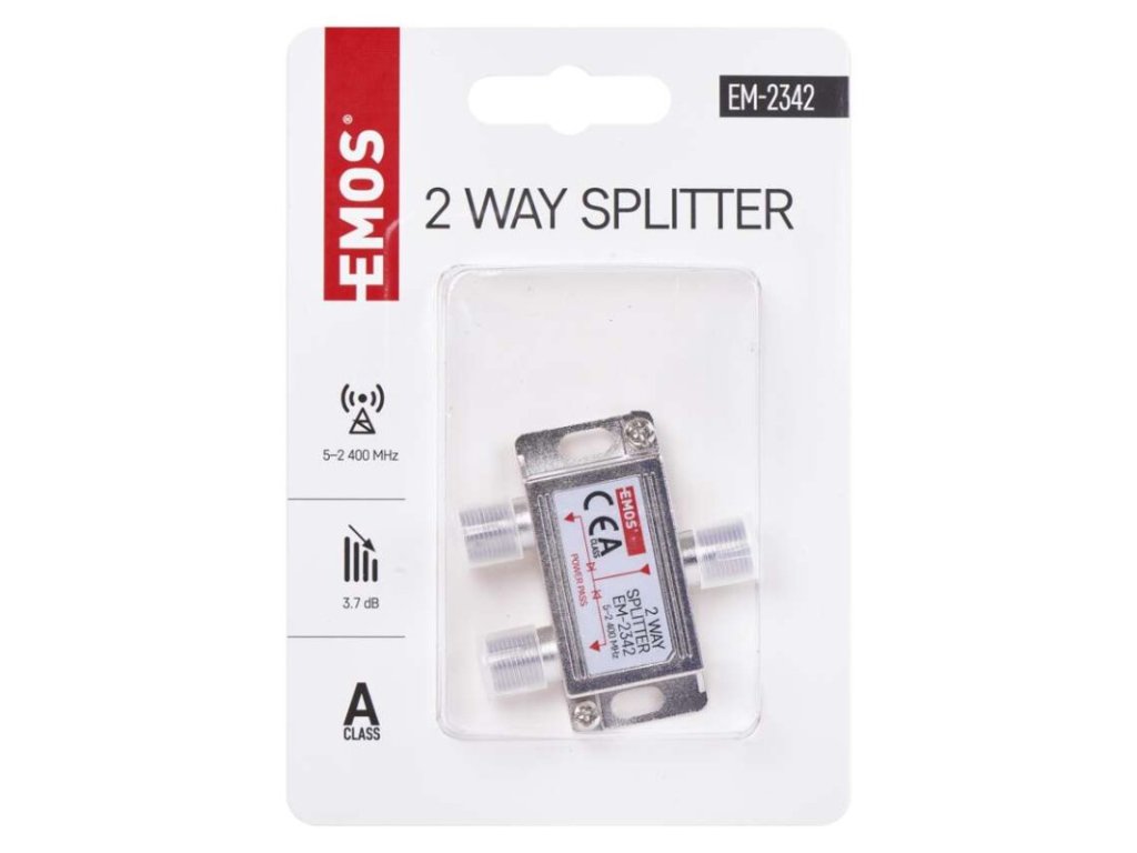 frekvenčný rozsah: 5–2 400 MHz|krytie: IP20|materiál tela rozbočovača: zinkový odliatok|počet vstupov: 1|počet výstupov: 2|použitie: TV + R|pracovná teplota: -10–+65 °C|predajný obal: 1 ks, krabica|prevedenie: feritový|priechodná pre jednosmerné napätie (power pass): áno, 2×|priechodný útlm: 3,7 dB|rozmer: 25 × 35 × 20 mm|tlmenie odrazu na vstupe: neuvádza sa|typ konektorov: F|zvlnenie v pásme: neuvádza saDodatočné parametre