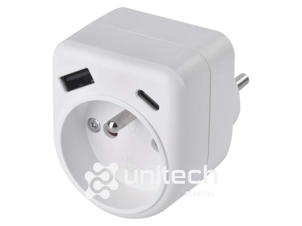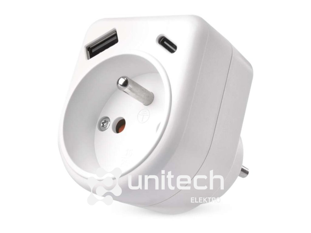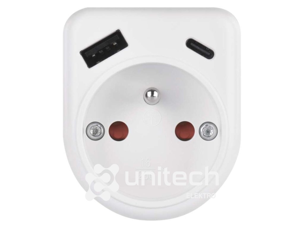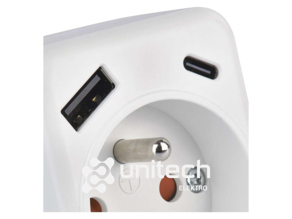 Rozbočovacia zásuvka 1×, 1×USB-A+1×USB-C, biela