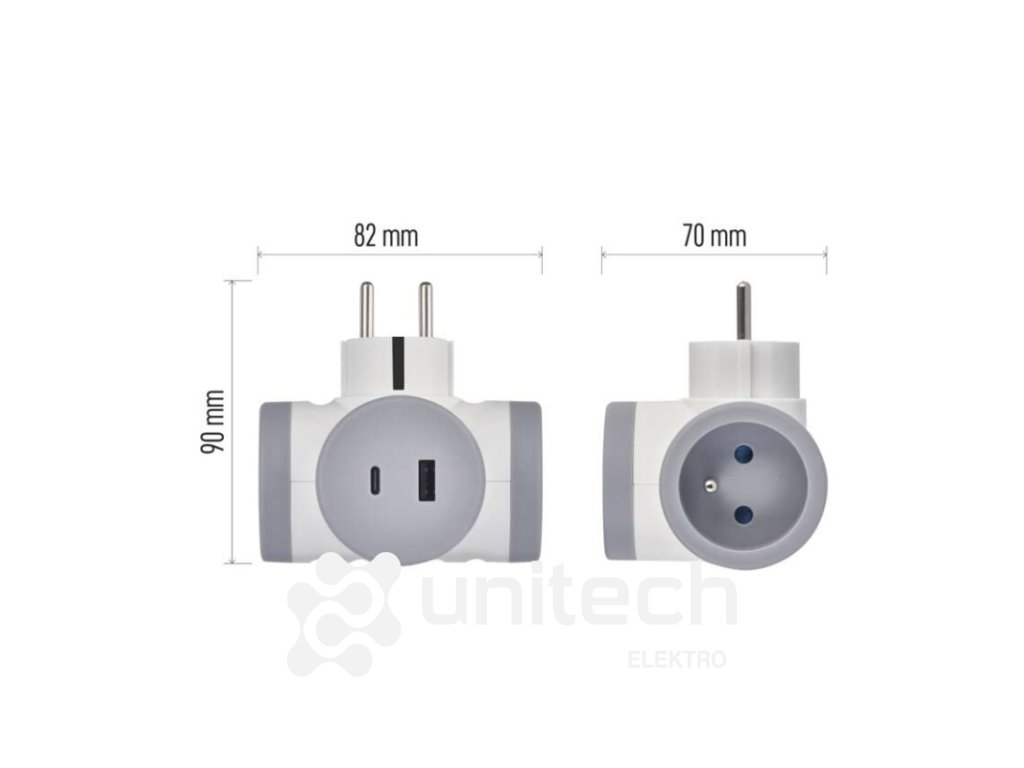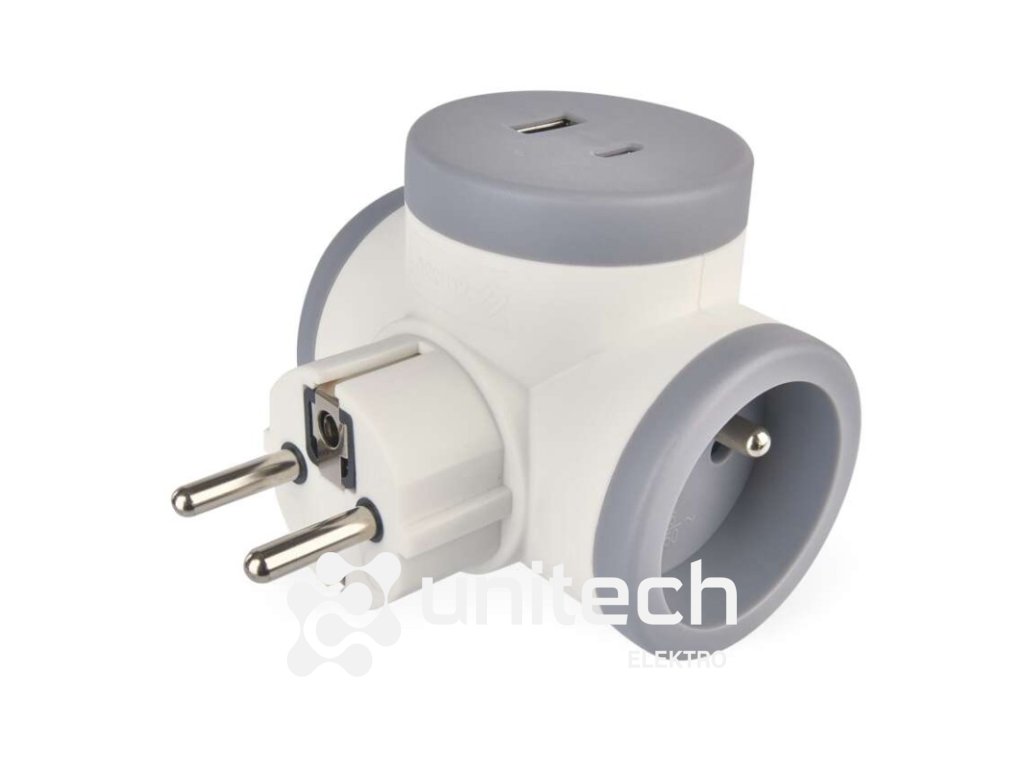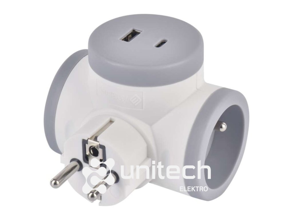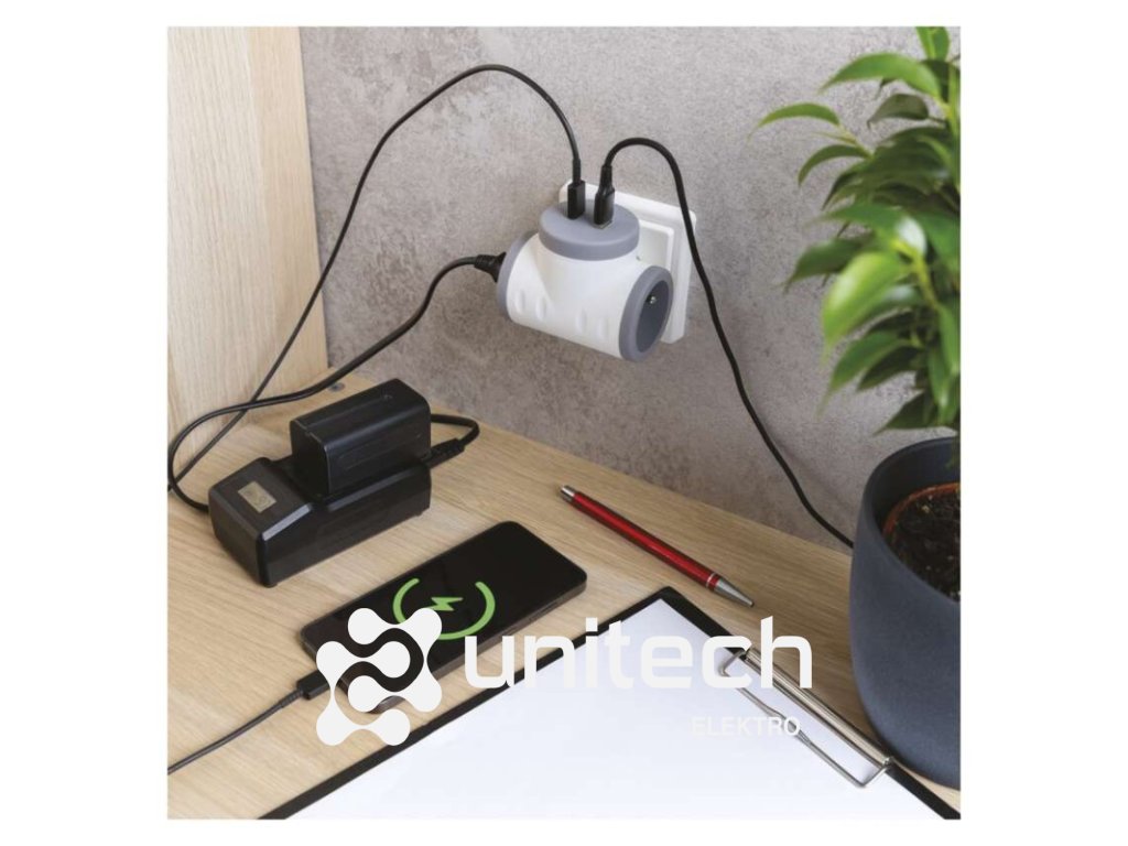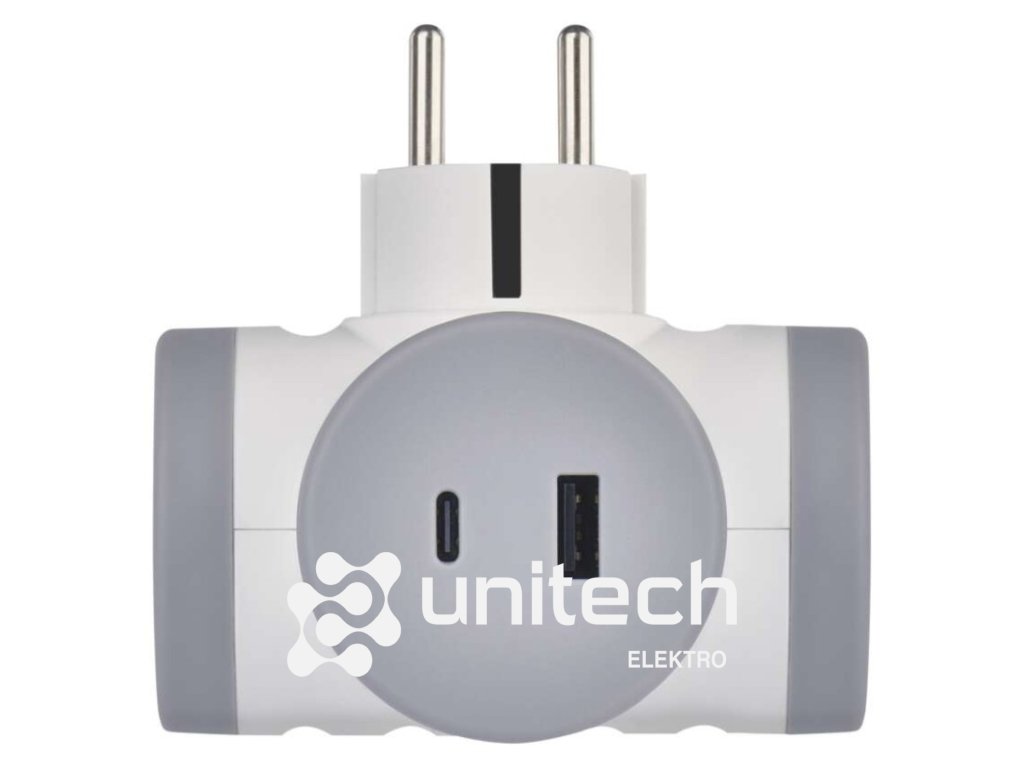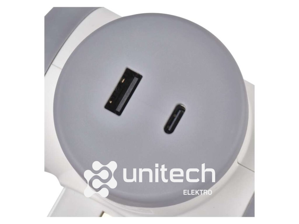 Rozbočovacia zásuvka 2×, 1×USB-A+1×USB-C, bielo-sivá