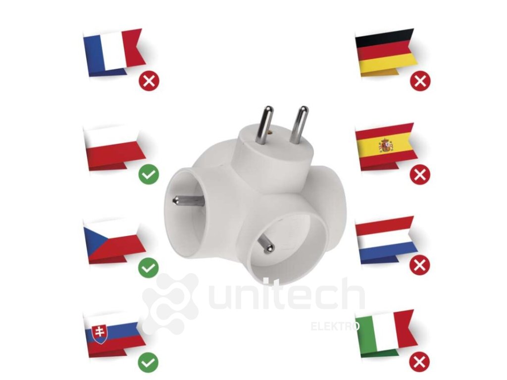 detské clonky: nie|diaľkový ovládač: nie|dosah signálu: neuvádza sa|easy learning: neuvádza sa|farba: biela|krytie: IP20|materiál: plast|max. záťaž: 2 300 W|možnosť ovládania: neuvádza sa|napätie/prúd: 250 V~/10 A max.|počet pólov: 2P + PE|počet zásuviek: 4× 2P + PE|pozície ochranného kontaktu: neuvádza sa|predajný obal: 1 ks, záves|prenosová frekvencia: neuvádza sa|produkt: rozbočovacia zásuvka 4×|typ: FRENCH|vonkajšie použitie: nie|vypínač: nieDodatočné parametre